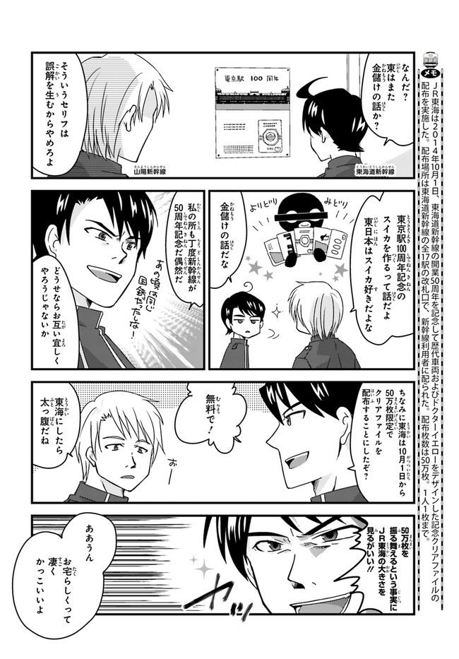 日本全国に繋がる鉄道網…そんな鉄道路線たちを擬人化した鉄道トリビアコメディ!日本一の収益を誇る東海道新幹線はものすごく金に細かかったり、超かっこいい新幹線500系を誇る山陽新幹線はイケメンなのに個性の強い路線(東海道新幹線&九州新幹線)に挟まれて不憫だったり……と、読めば妙に納得するユニークで愛すべき擬人化路線たち!首都圏中心に新潟、東北方面などの路線も含め、登場路線数は90路線以上!あなたの街の鉄道も擬人化されているかもしれませんよ?