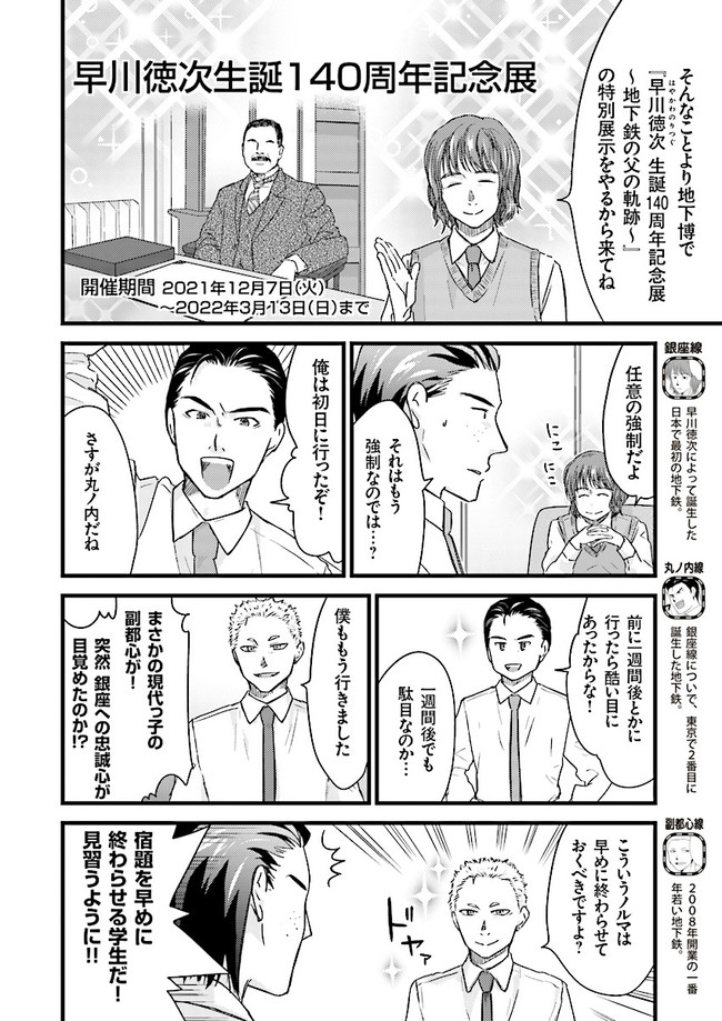 日本全国に繋がる鉄道網…そんな鉄道路線たちを擬人化した鉄道トリビアコメディ!日本一の収益を誇る東海道新幹線はものすごく金に細かかったり、超かっこいい新幹線500系を誇る山陽新幹線はイケメンなのに個性の強い路線(東海道新幹線&九州新幹線)に挟まれて不憫だったり……と、読めば妙に納得するユニークで愛すべき擬人化路線たち!首都圏中心に新潟、東北方面などの路線も含め、登場路線数は90路線以上!あなたの街の鉄道も擬人化されているかもしれませんよ? コミックス好評発売中!! 【収録話数】 『青春鉄道2021年度版』Sta.117~136 『青春鉄道2020年度版』Sta.96〜116/鉄ミュスピンオフ稽古場レポート 『青春鉄道2019年度版』Sta75~95/鉄ミュ3稽古場レポート/2018年あけましておめでとう号 『青春鉄道2018年度版』Sta-53~Sta-74/鉄ミュ2稽古場レポート 『青春鉄道2017年度版』Sta-34~Sta-52、黎明編番外編 『青春鉄道2016年度版』Sta-15〜Sta-33、鉄ミュ稽古場レポート 『青春鉄道2015年度版』Sta-1〜Sta-14