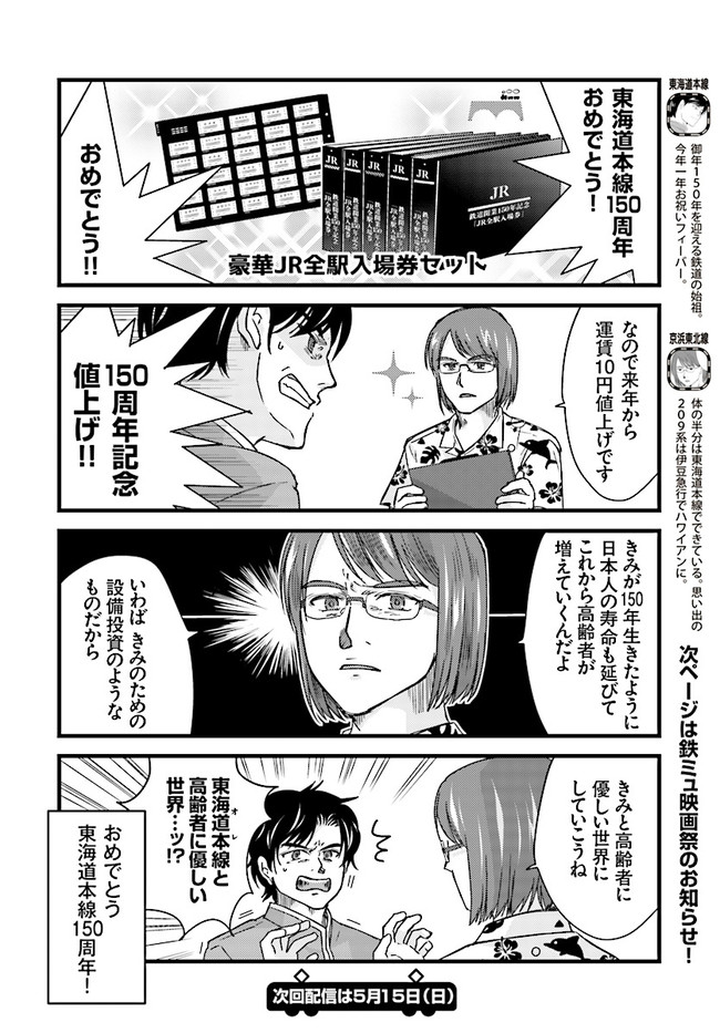 日本全国に繋がる鉄道網…そんな鉄道路線たちを擬人化した鉄道トリビアコメディ!日本一の収益を誇る東海道新幹線はものすごく金に細かかったり、超かっこいい新幹線500系を誇る山陽新幹線はイケメンなのに個性の強い路線(東海道新幹線&九州新幹線)に挟まれて不憫だったり……と、読めば妙に納得するユニークで愛すべき擬人化路線たち!首都圏中心に新潟、東北方面などの路線も含め、登場路線数は90路線以上!あなたの街の鉄道も擬人化されているかもしれませんよ? コミックス好評発売中!! 【収録話数】 『青春鉄道2021年度版』Sta.117~136 『青春鉄道2020年度版』Sta.96〜116/鉄ミュスピンオフ稽古場レポート 『青春鉄道2019年度版』Sta75~95/鉄ミュ3稽古場レポート/2018年あけましておめでとう号 『青春鉄道2018年度版』Sta-53~Sta-74/鉄ミュ2稽古場レポート 『青春鉄道2017年度版』Sta-34~Sta-52、黎明編番外編 『青春鉄道2016年度版』Sta-15〜Sta-33、鉄ミュ稽古場レポート 『青春鉄道2015年度版』Sta-1〜Sta-14