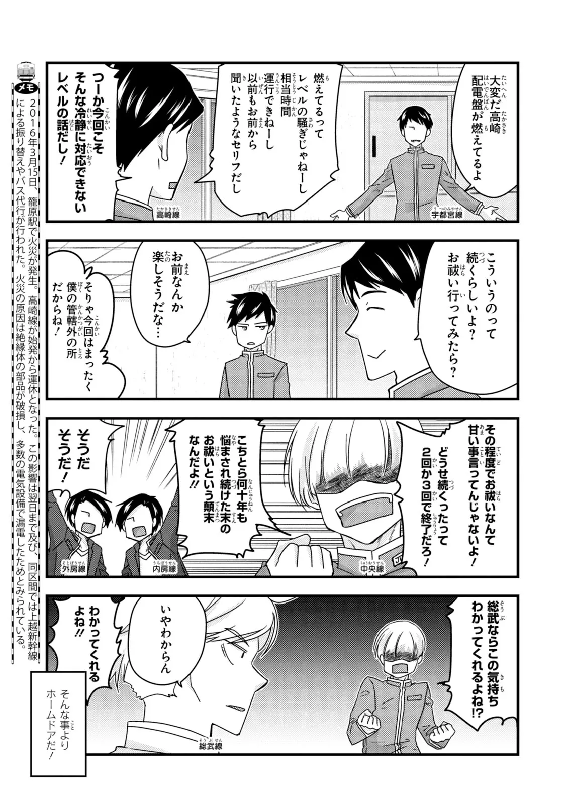 日本全国に繋がる鉄道網…そんな鉄道路線たちを擬人化した鉄道トリビアコメディ!日本一の収益を誇る東海道新幹線はものすごく金に細かかったり、超かっこいい新幹線500系を誇る山陽新幹線はイケメンなのに個性の強い路線(東海道新幹線&九州新幹線)に挟まれて不憫だったり……と、読めば妙に納得するユニークで愛すべき擬人化路線たち!首都圏中心に新潟、東北方面などの路線も含め、登場路線数は90路線以上!あなたの街の鉄道も擬人化されているかもしれませんよ?
