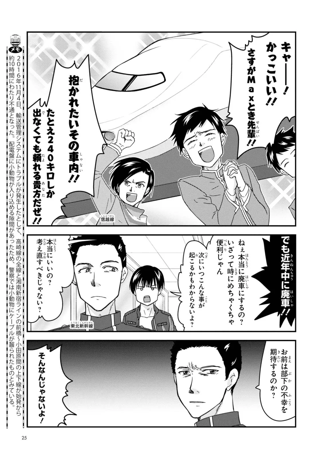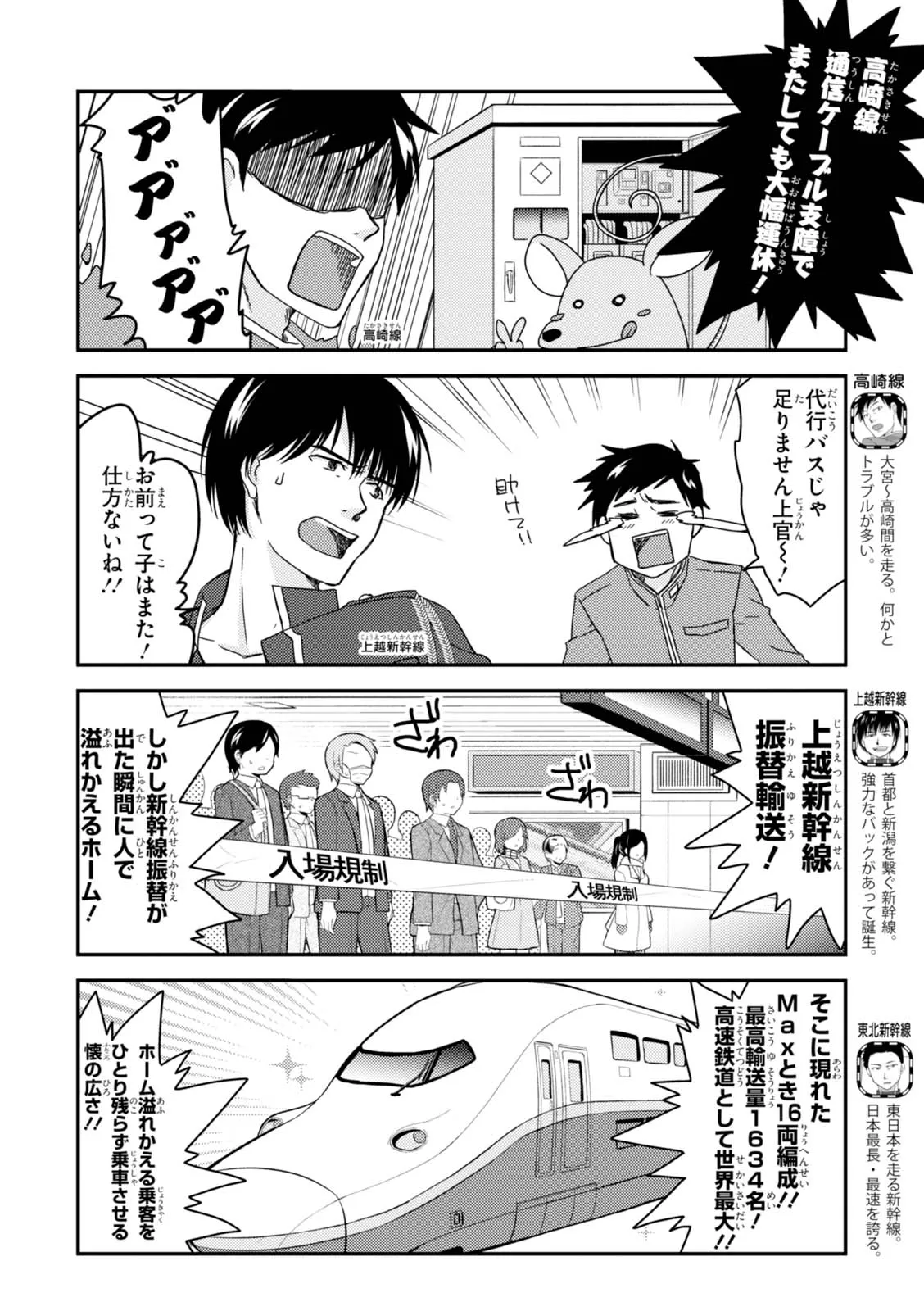 日本全国に繋がる鉄道網…そんな鉄道路線たちを擬人化した鉄道トリビアコメディ!日本一の収益を誇る東海道新幹線はものすごく金に細かかったり、超かっこいい新幹線500系を誇る山陽新幹線はイケメンなのに個性の強い路線(東海道新幹線&九州新幹線)に挟まれて不憫だったり……と、読めば妙に納得するユニークで愛すべき擬人化路線たち!首都圏中心に新潟、東北方面などの路線も含め、登場路線数は90路線以上!あなたの街の鉄道も擬人化されているかもしれませんよ?