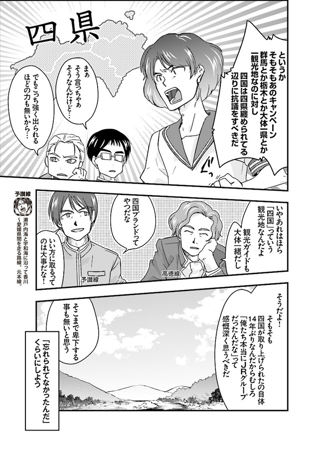 日本全国に繋がる鉄道網…そんな鉄道路線たちを擬人化した鉄道トリビアコメディ!日本一の収益を誇る東海道新幹線はものすごく金に細かかったり、超かっこいい新幹線500系を誇る山陽新幹線はイケメンなのに個性の強い路線(東海道新幹線&九州新幹線)に挟まれて不憫だったり……と、読めば妙に納得するユニークで愛すべき擬人化路線たち!首都圏中心に新潟、東北方面などの路線も含め、登場路線数は90路線以上!あなたの街の鉄道も擬人化されているかもしれませんよ? コミックス好評発売中!! 【収録話数】 『青春鉄道2021年度版』Sta.117~136 『青春鉄道2020年度版』Sta.96〜116/鉄ミュスピンオフ稽古場レポート 『青春鉄道2019年度版』Sta75~95/鉄ミュ3稽古場レポート/2018年あけましておめでとう号 『青春鉄道2018年度版』Sta-53~Sta-74/鉄ミュ2稽古場レポート 『青春鉄道2017年度版』Sta-34~Sta-52、黎明編番外編 『青春鉄道2016年度版』Sta-15〜Sta-33、鉄ミュ稽古場レポート 『青春鉄道2015年度版』Sta-1〜Sta-14
