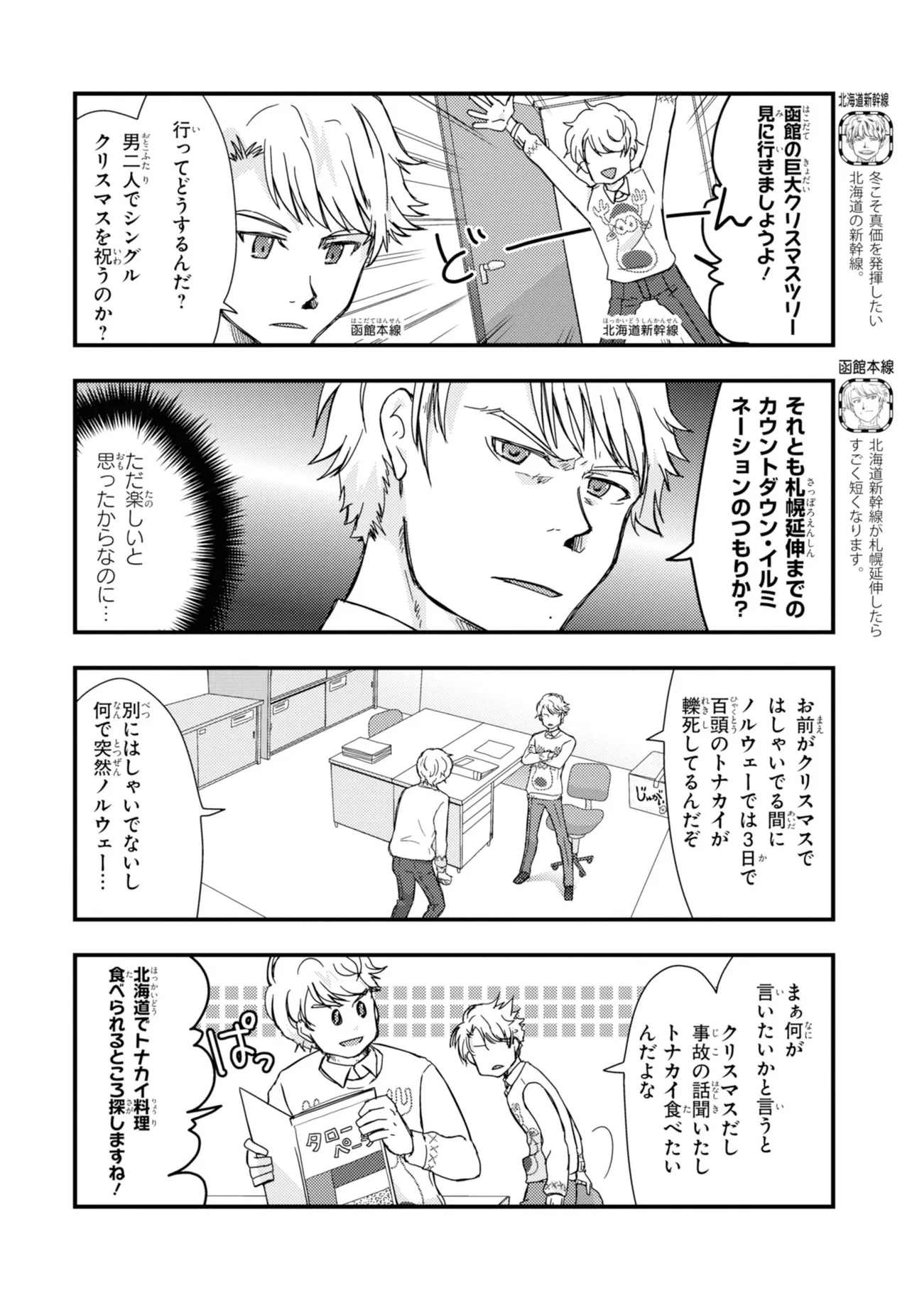日本全国に繋がる鉄道網…そんな鉄道路線たちを擬人化した鉄道トリビアコメディ!日本一の収益を誇る東海道新幹線はものすごく金に細かかったり、超かっこいい新幹線500系を誇る山陽新幹線はイケメンなのに個性の強い路線(東海道新幹線&九州新幹線)に挟まれて不憫だったり……と、読めば妙に納得するユニークで愛すべき擬人化路線たち!首都圏中心に新潟、東北方面などの路線も含め、登場路線数は90路線以上!あなたの街の鉄道も擬人化されているかもしれませんよ? コミックス好評発売中!! 【収録話数】 『青春鉄道2021年度版』Sta.117~136 『青春鉄道2020年度版』Sta.96〜116/鉄ミュスピンオフ稽古場レポート 『青春鉄道2019年度版』Sta75~95/鉄ミュ3稽古場レポート/2018年あけましておめでとう号 『青春鉄道2018年度版』Sta-53~Sta-74/鉄ミュ2稽古場レポート 『青春鉄道2017年度版』Sta-34~Sta-52、黎明編番外編 『青春鉄道2016年度版』Sta-15〜Sta-33、鉄ミュ稽古場レポート 『青春鉄道2015年度版』Sta-1〜Sta-14