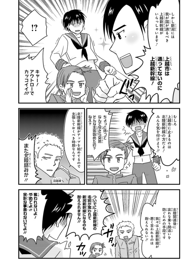 日本全国に繋がる鉄道網…そんな鉄道路線たちを擬人化した鉄道トリビアコメディ!日本一の収益を誇る東海道新幹線はものすごく金に細かかったり、超かっこいい新幹線500系を誇る山陽新幹線はイケメンなのに個性の強い路線(東海道新幹線&九州新幹線)に挟まれて不憫だったり……と、読めば妙に納得するユニークで愛すべき擬人化路線たち!首都圏中心に新潟、東北方面などの路線も含め、登場路線数は90路線以上!あなたの街の鉄道も擬人化されているかもしれませんよ?