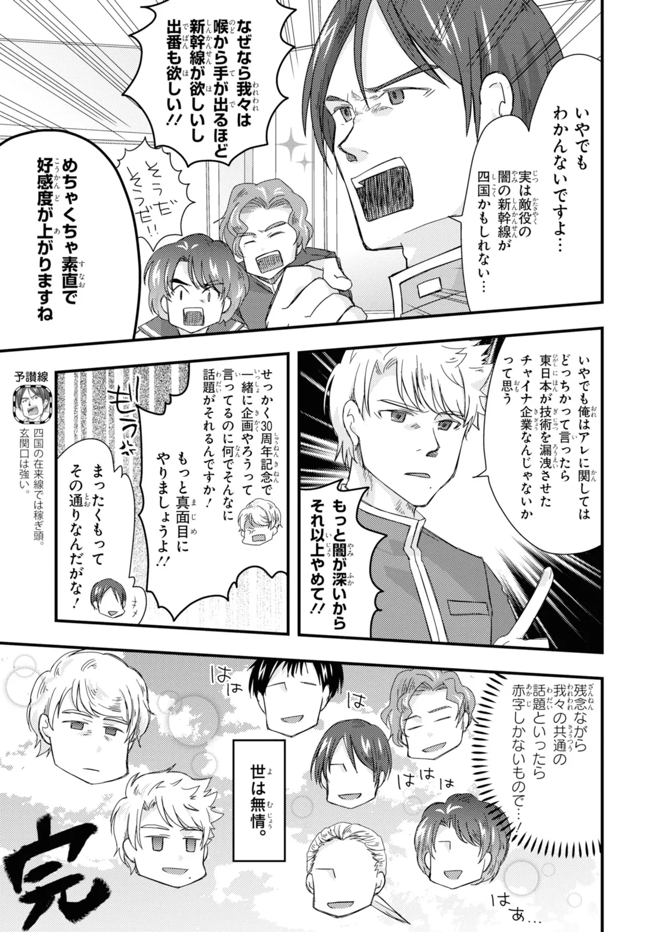 日本全国に繋がる鉄道網…そんな鉄道路線たちを擬人化した鉄道トリビアコメディ!日本一の収益を誇る東海道新幹線はものすごく金に細かかったり、超かっこいい新幹線500系を誇る山陽新幹線はイケメンなのに個性の強い路線(東海道新幹線&九州新幹線)に挟まれて不憫だったり……と、読めば妙に納得するユニークで愛すべき擬人化路線たち!首都圏中心に新潟、東北方面などの路線も含め、登場路線数は90路線以上!あなたの街の鉄道も擬人化されているかもしれませんよ?