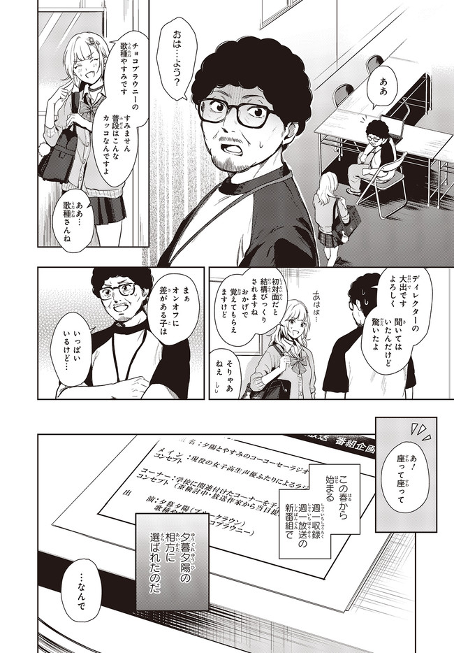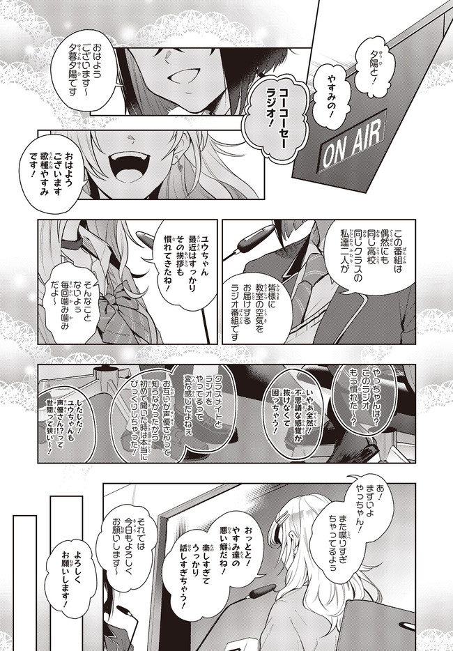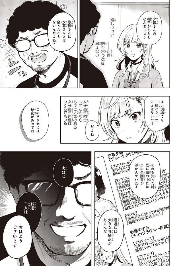 声優ラジオのウラオモテ 第1話 声優ラジオのウラオモテ 投稿者 admin - 5年 前に 幸せな読書漫画 声優ラジオのウラオモテ 第1話 , いいねと共有ボタンをクリックすることを忘れないでください. Manga 声優ラジオのウラオモテ 常に更新されます 無料コミック Comic Top. 他のマンガの更新を読むことを忘れないでください。 マンガコレクションのリスト 無料コミック Comic Top マンガリストメニューにあります. お友達と共有しましょう! Facebook Twitter Pinterest Whatsapp 前のエピソード すべての章 次のエピソード リスト ページング Loading.. 前のエピソード すべての章 次のエピソード リスト ページング お友達と共有しましょう! Facebook Twitter Pinterest Whatsapp お気に入りに追加に続く 0 人 声優ラジオのウラオモテ ギャル&地味子の放課後は、超清純派のアイドル声優!? 「夕陽と~」「やすみの! せーのっ!」 「「コーコーセーラジオ~!」」 偶然にも同じ高校・同じクラスに通う仲良し声優コンビによる、ほんわかラジオ番組がスタート! だけどふたりの素顔は、相性最悪なギャル×根暗地味子だった!? バレたら(アイドル声優として)終わり!? 青春声優エンタテインメントが、コミカライズで登場! さばみぞれ(キャラクターデザイン)二月公(原作)巻本梅実(漫画) BOOK☆WALKERでセール中!!コミカライズラジオ声優女子高生電撃大賞電撃文庫