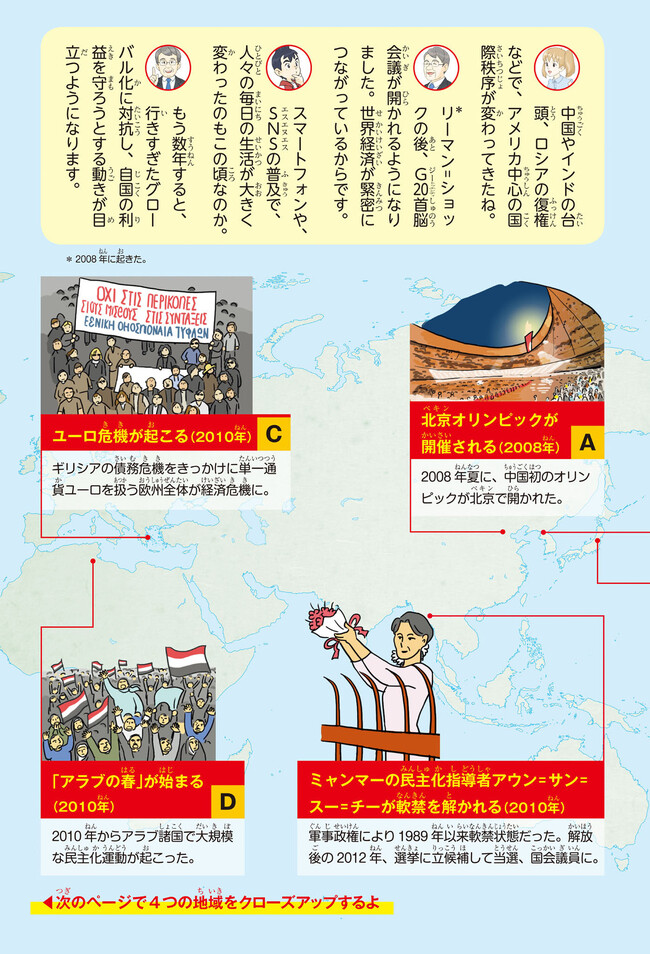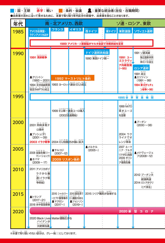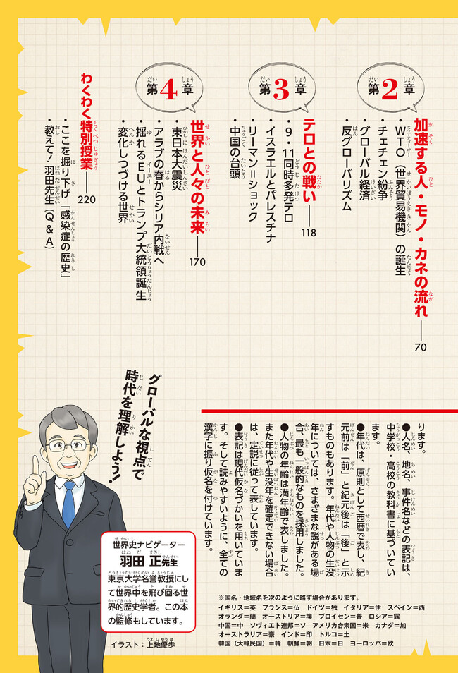 最先端の歴史理解の方法「グローバル・ヒストリー」を採用し、全20巻を年代で区切った、まったく新しい歴史まんが。さらに進化した「東大流」で歴史の「横のつながり」をつかむ工夫が満載です。全20巻のうち11冊以上が近現代史なので、2022年度から始まる高校の新必修科目「歴史総合」の先取りにもぴったり。新型コロナウイルス感染症など最新の世界情勢までまんがで読めます。
