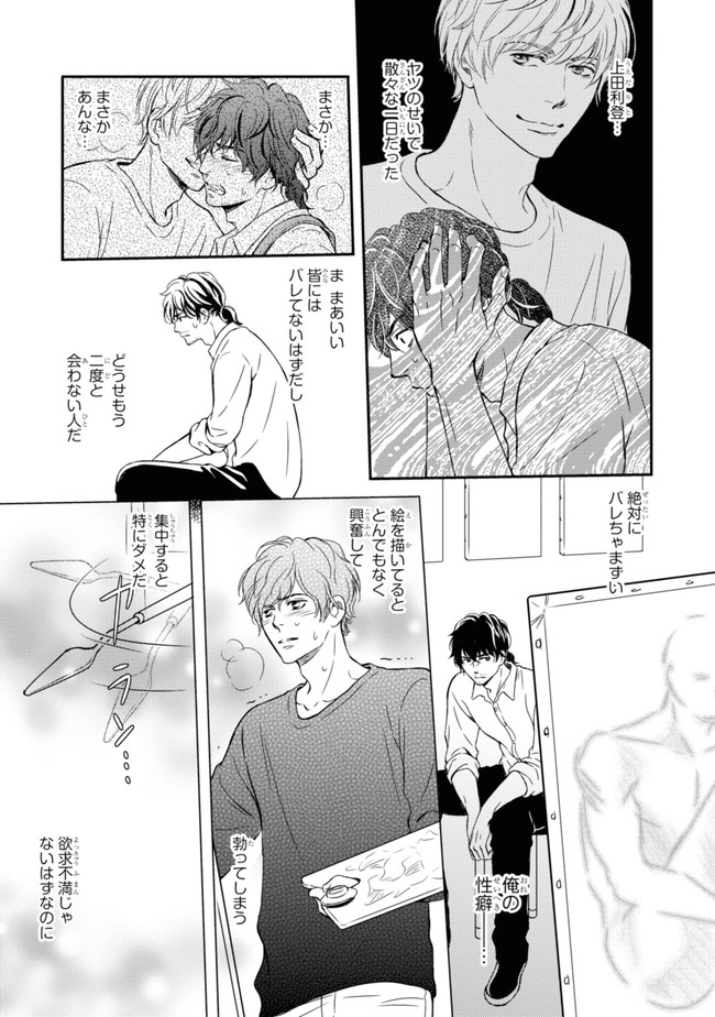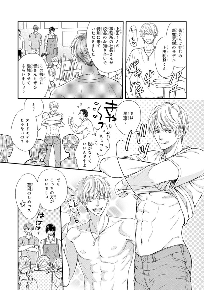 売れっ子モデルの年下クン×しがない講師のオジサン 美術専門学校のしがない講師のユキは、人には言えない性癖の持ち主。ところがその秘密が人気モデルの利登にバレると、性癖なおしに付き合うことを条件に迫られたばかりか押し倒されて!?専属モデルになると宣言され、放課後も休日も付きまとわれる羽目になってしまう!弱みを握る年下ハイスペック男子に迫られタジタジのユキは、華やかな世界に生きる利登が自分に本気とも信じられない。それでも利登の魅力にはあらがえなくて……。