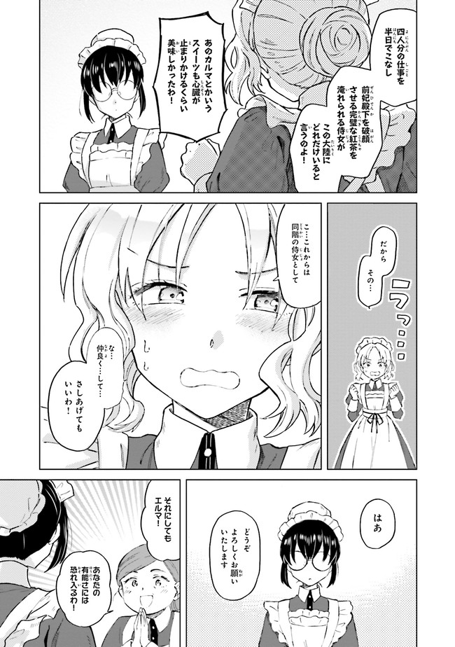 もしや……シャバの方というのは、そのくらいのこともできないのですか? 監獄生まれ、監獄育ちの少女エルマは恩赦により「釈放」される。 王宮付き侍女となったエルマは、母の言いつけ通り「普通」の少女を目指すが、 その常識外れな能力や行動は、シャバの「普通」をはるかに超えたもので…? 博学多才な有能メイドによる、王宮無双譚、開幕!!