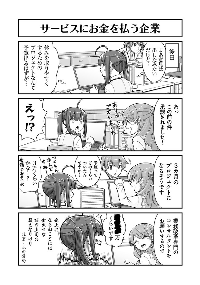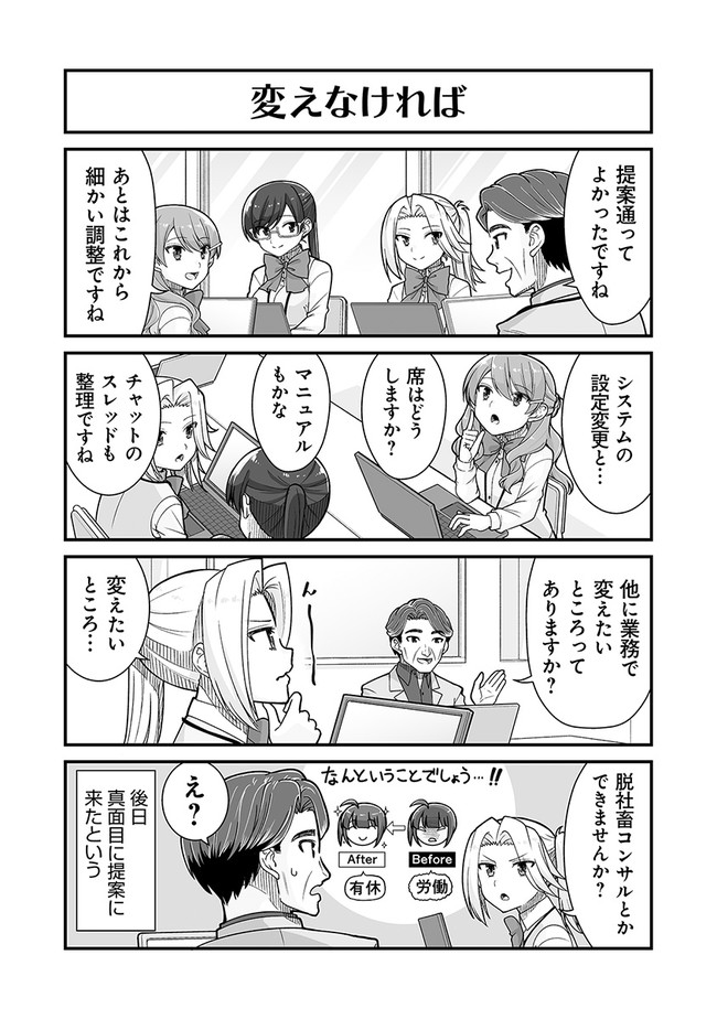 新卒でブラック企業に就職した社会人3年目のかすみは、30連勤目の深夜残業の休憩中、屋上で見た流れ星に「有給1日だけください」と願ったところ、不思議な光に包まれて……。気づいたらそこは「ホワイト製作所」の入社挨拶の場だった! ブラック企業の常識に染まったかすみは、ホワイト企業の文化になじめるのか!?