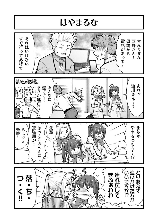 新卒でブラック企業に就職した社会人3年目のかすみは、30連勤目の深夜残業の休憩中、屋上で見た流れ星に「有給1日だけください」と願ったところ、不思議な光に包まれて……。気づいたらそこは「ホワイト製作所」の入社挨拶の場だった! ブラック企業の常識に染まったかすみは、ホワイト企業の文化になじめるのか!?
