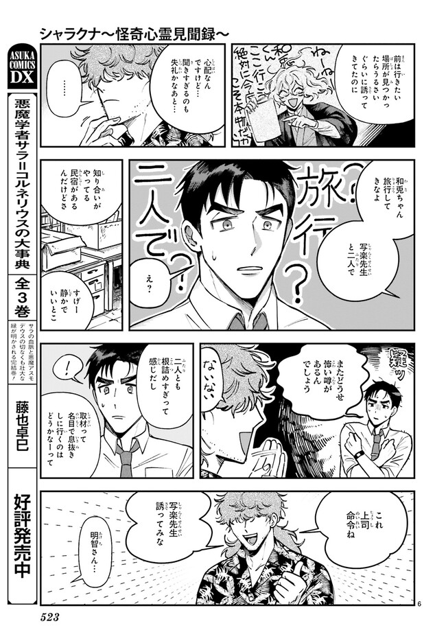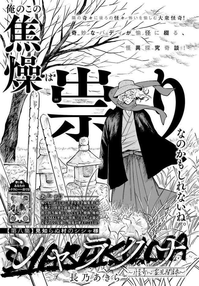 シャラクナ~怪奇心霊見聞録~ 第八集ー1 シャラクナ~怪奇心霊見聞録~ 投稿者 admin - 2年 前に 幸せな読書漫画 シャラクナ~怪奇心霊見聞録~ 第八集ー1 , いいねと共有ボタンをクリックすることを忘れないでください. Manga シャラクナ~怪奇心霊見聞録~ 常に更新されます 無料コミック Comic Top. 他のマンガの更新を読むことを忘れないでください。 マンガコレクションのリスト 無料コミック Comic Top マンガリストメニューにあります. お友達と共有しましょう! Facebook Twitter Pinterest Whatsapp 前のエピソード すべての章 次のエピソード リスト ページング Loading.. 前のエピソード すべての章 次のエピソード リスト ページング お友達と共有しましょう! Facebook Twitter Pinterest Whatsapp お気に入りに追加に続く 2 人 シャラクナ~怪奇心霊見聞録~ 怖いものが大の苦手な若手編集者・和兎尊之は怖い話専門作家・写楽の担当になってしまい……。奇妙なバディが愉快に綴る、怪異探求奇譚! 長乃あきら(著者) forgirlsイケメンお仕事ギャグコメディサスペンスシリアスホラー・オカルトミステリー妖怪小説家心霊怖い怪異社会人編集者
