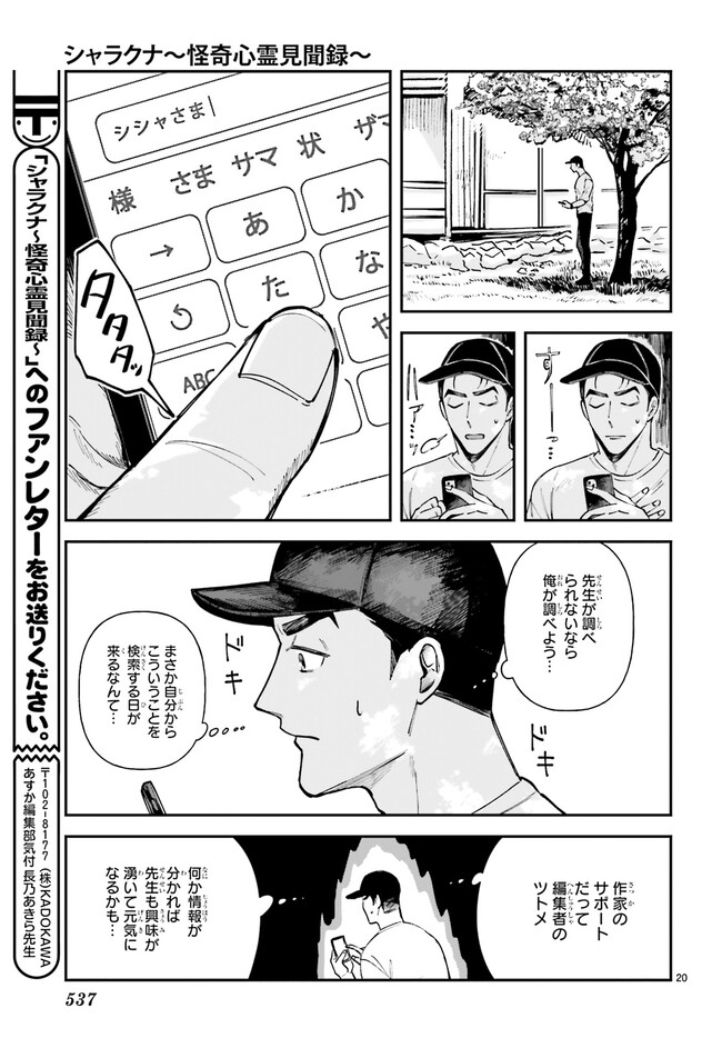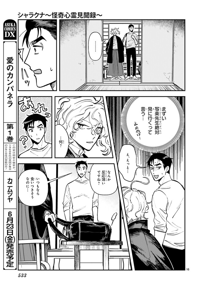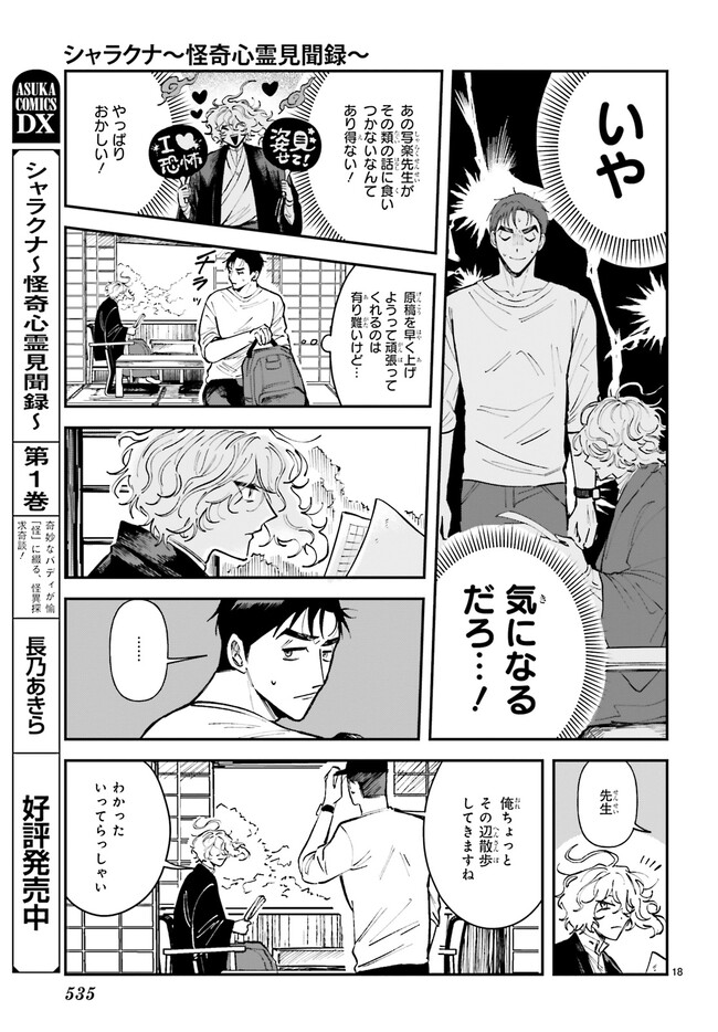 シャラクナ~怪奇心霊見聞録~ 第八集ー3 シャラクナ~怪奇心霊見聞録~ 投稿者 admin - 2年 前に 幸せな読書漫画 シャラクナ~怪奇心霊見聞録~ 第八集ー3 , いいねと共有ボタンをクリックすることを忘れないでください. Manga シャラクナ~怪奇心霊見聞録~ 常に更新されます 無料コミック Comic Top. 他のマンガの更新を読むことを忘れないでください。 マンガコレクションのリスト 無料コミック Comic Top マンガリストメニューにあります. お友達と共有しましょう! Facebook Twitter Pinterest Whatsapp 前のエピソード すべての章 次のエピソード リスト ページング Loading.. 前のエピソード すべての章 次のエピソード リスト ページング お友達と共有しましょう! Facebook Twitter Pinterest Whatsapp お気に入りに追加に続く 2 人 シャラクナ~怪奇心霊見聞録~ 怖いものが大の苦手な若手編集者・和兎尊之は怖い話専門作家・写楽の担当になってしまい……。奇妙なバディが愉快に綴る、怪異探求奇譚! 長乃あきら(著者) forgirlsイケメンお仕事ギャグコメディサスペンスシリアスホラー・オカルトミステリー妖怪小説家心霊怖い怪異社会人編集者