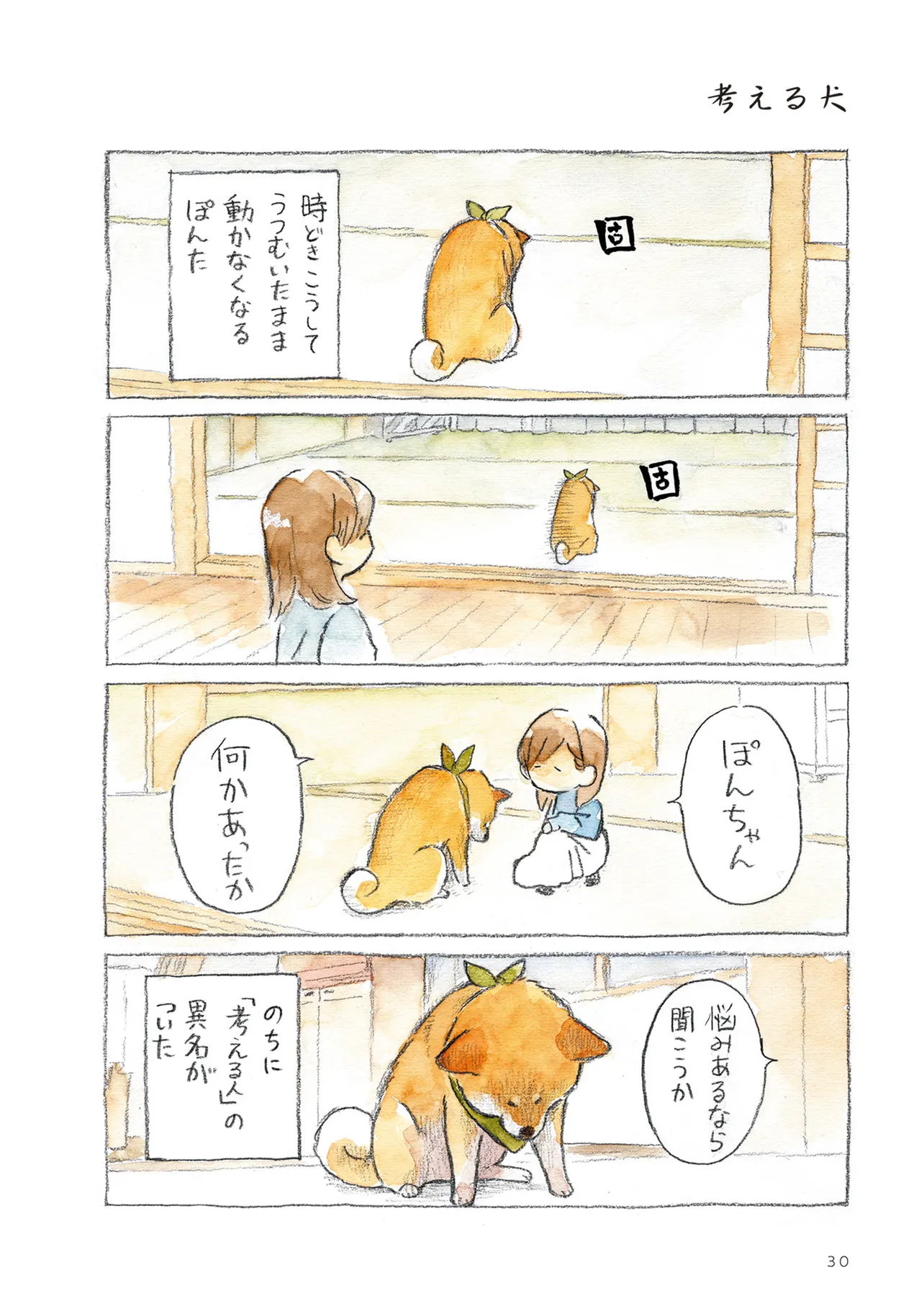 柴犬のぽんた(通称ぽんちゃん)10才、性格はマイペース。 人目を盗んでタップダンス、道なき道をクン活、家族の行く道を通せんぼ、玄関へのお迎えはやる気があるときだけ…。 人間の予想をいつも裏切る、自由気ままなぽんちゃんがクセになるとファン急増中! ぽんちゃんに振り回される日々は、なんだかとっても心地良い ——。