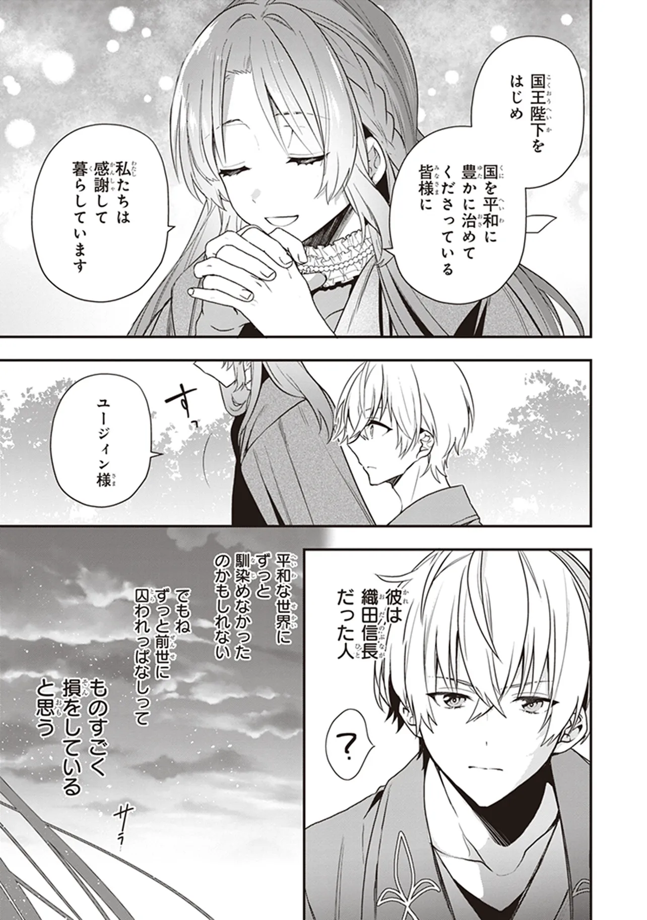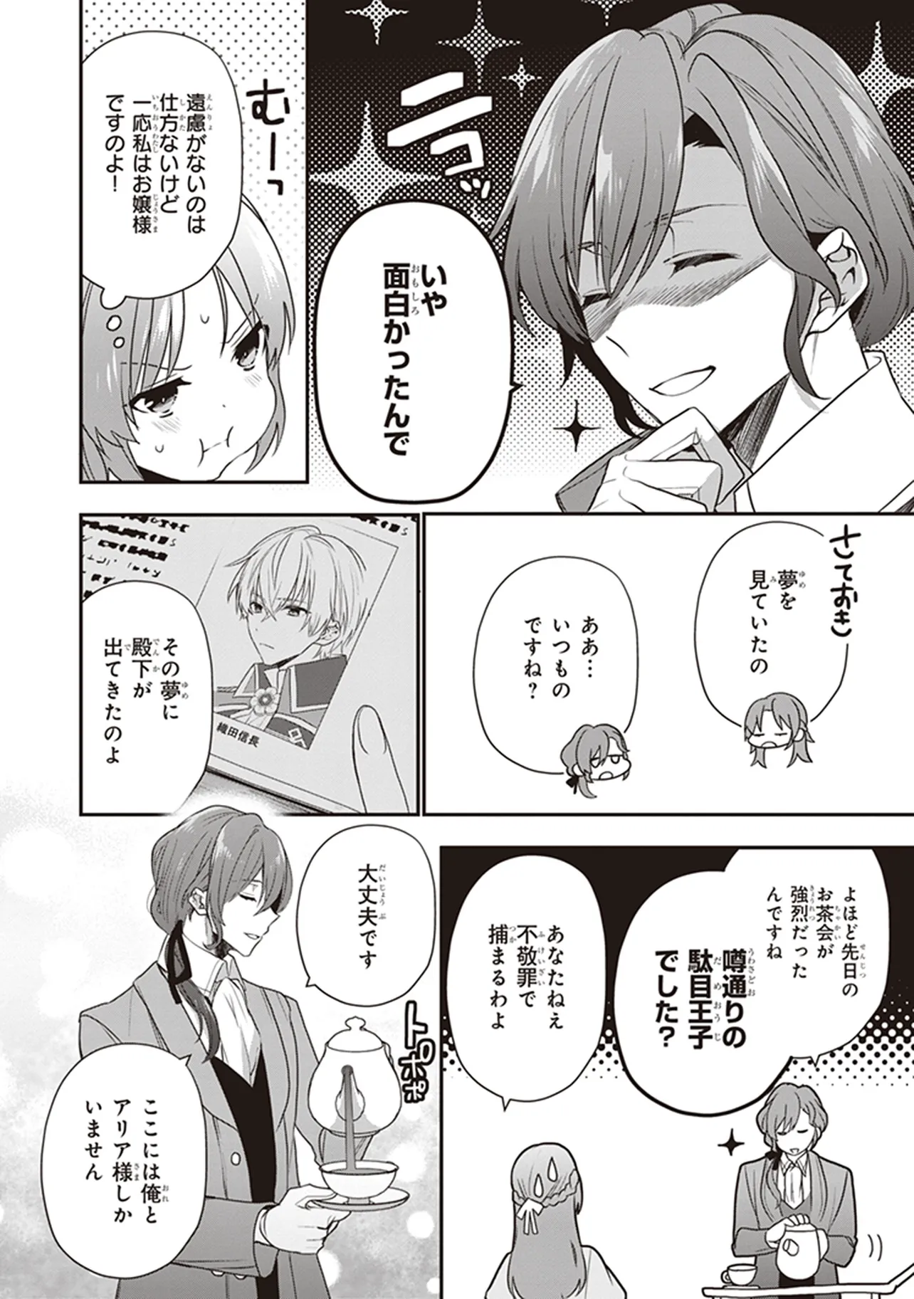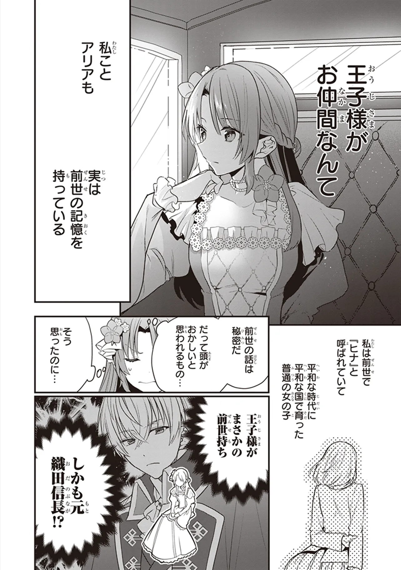 平凡な貴族令嬢に転生した、元・女子高生のアリア。 変わり者と噂の王子・ユージィンとのお見合いに駆り出されるも、 彼はいきなり「自分は元・織田信長だ」発言!! お相手が決まらないのはこのせいかと思わず納得するが、 おかしな話を素直に受けいれた彼女にユージィンは興味津々で… 私も前世持ちだとバレるの絶対NG!? 天下も獲れる最強王子による強烈アプローチの日々がはじまる!