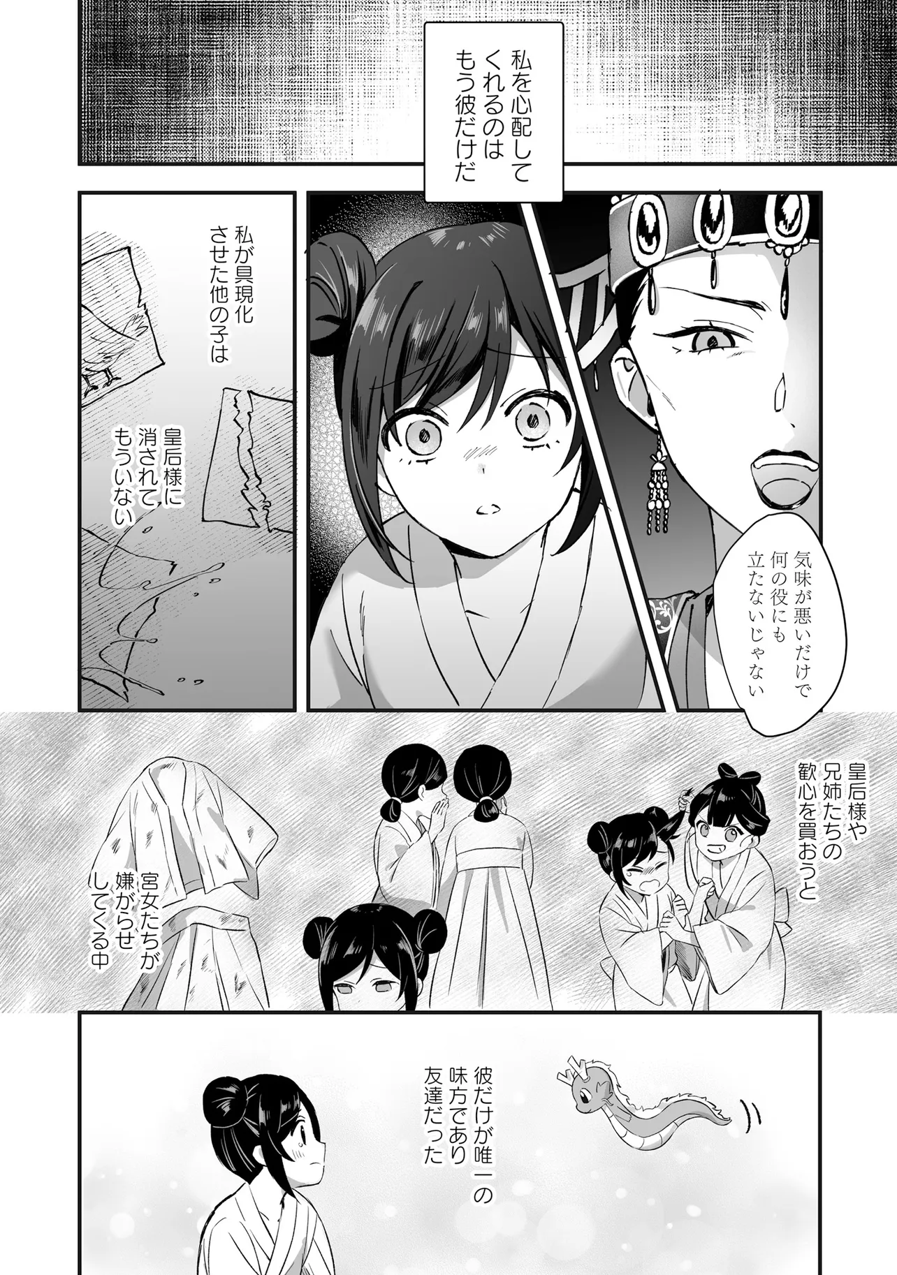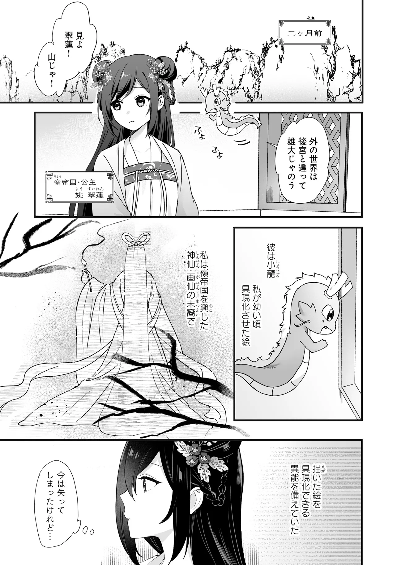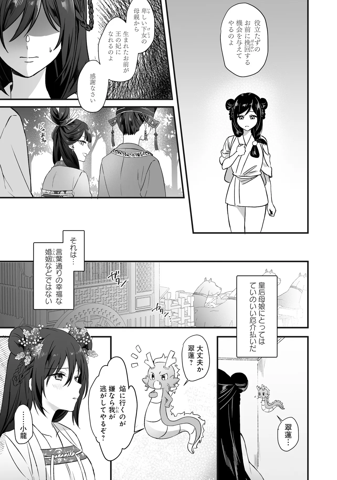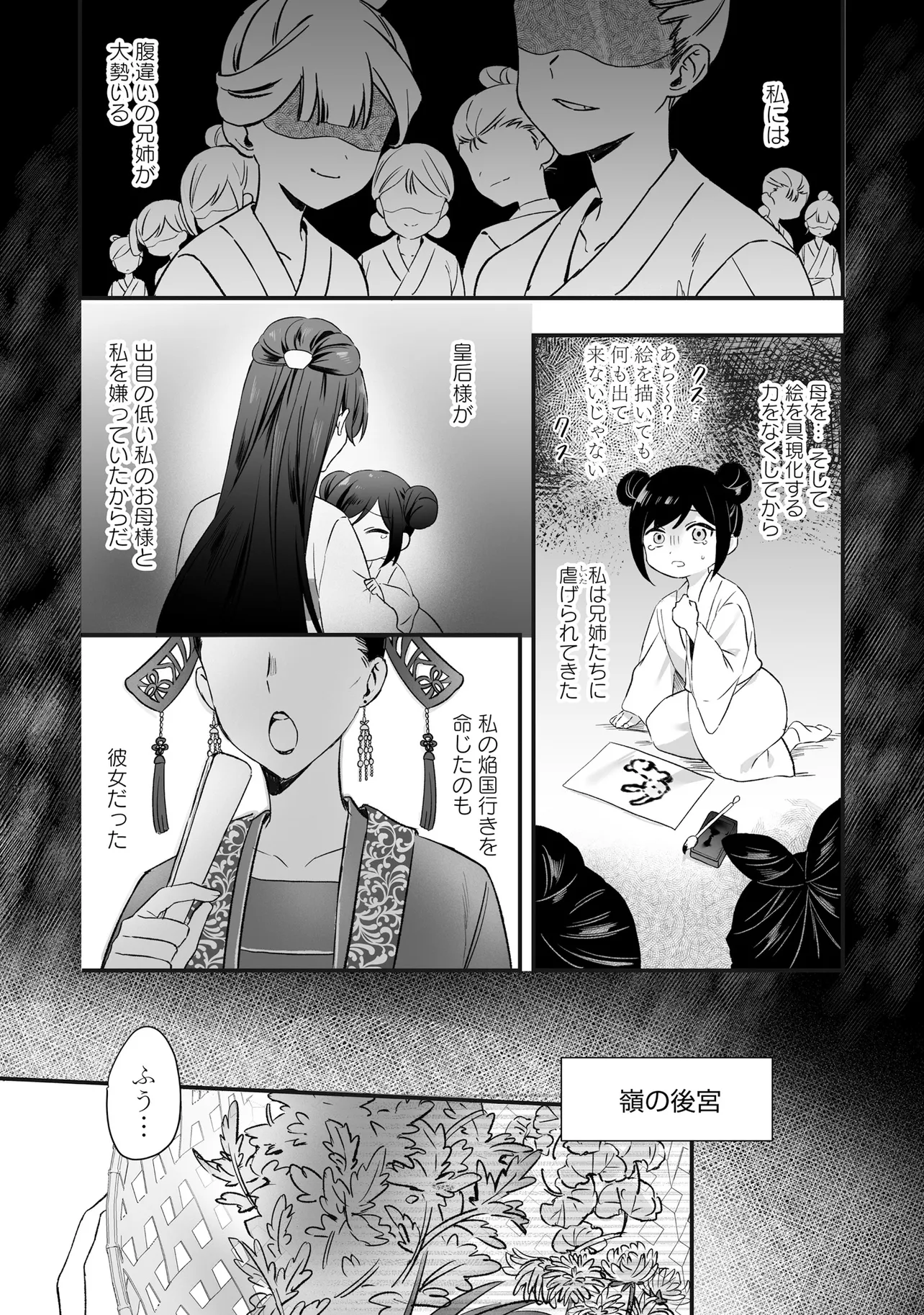 絵を具現化できる力を持ちながら、異能を失い虐げられて育った公主・翠蓮。彼女は異母姉の企てで、恐ろしい噂のある焔国の王に嫁ぐことになってしまう。親や兄弟を惨殺した王の話を聞き、怯える翠蓮だったが……嫁ぎ先で待っていたのは、王のいない穏やかな生活だった。後宮を散策していたところで、翠蓮は純朴で穏やかな青年・煌と出会う。園芸という共通の趣味を知り、距離が近づく二人――。しかし、国王主催の宴の夜に姿を現した煌の正体は焔の国王・煌天だった。戸惑う翠蓮だったが、更に煌天のもう一つの秘密を目の当たりにすることになり――?二重人格な国王と異能の公主の中華風シンデレラストーリー︕