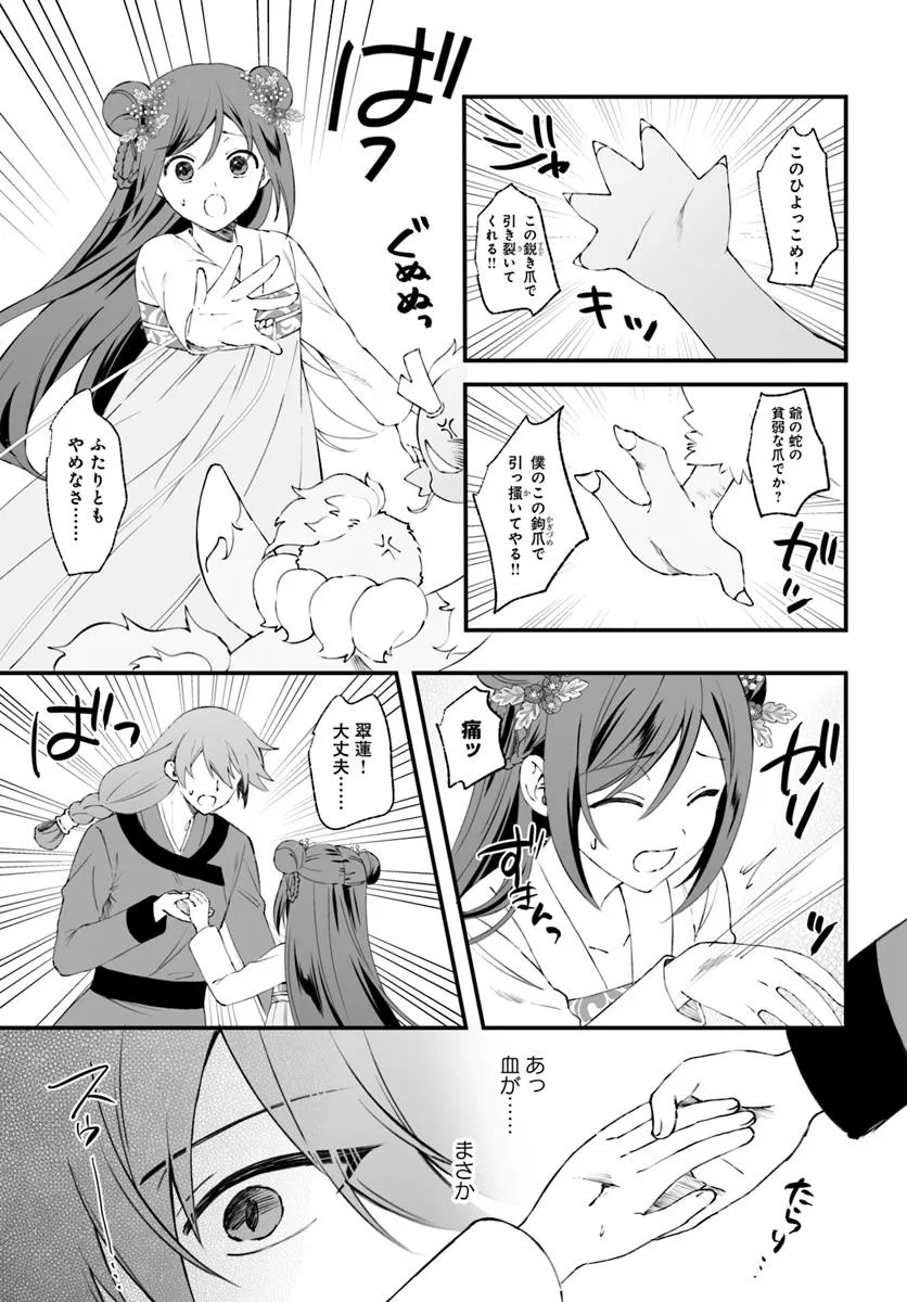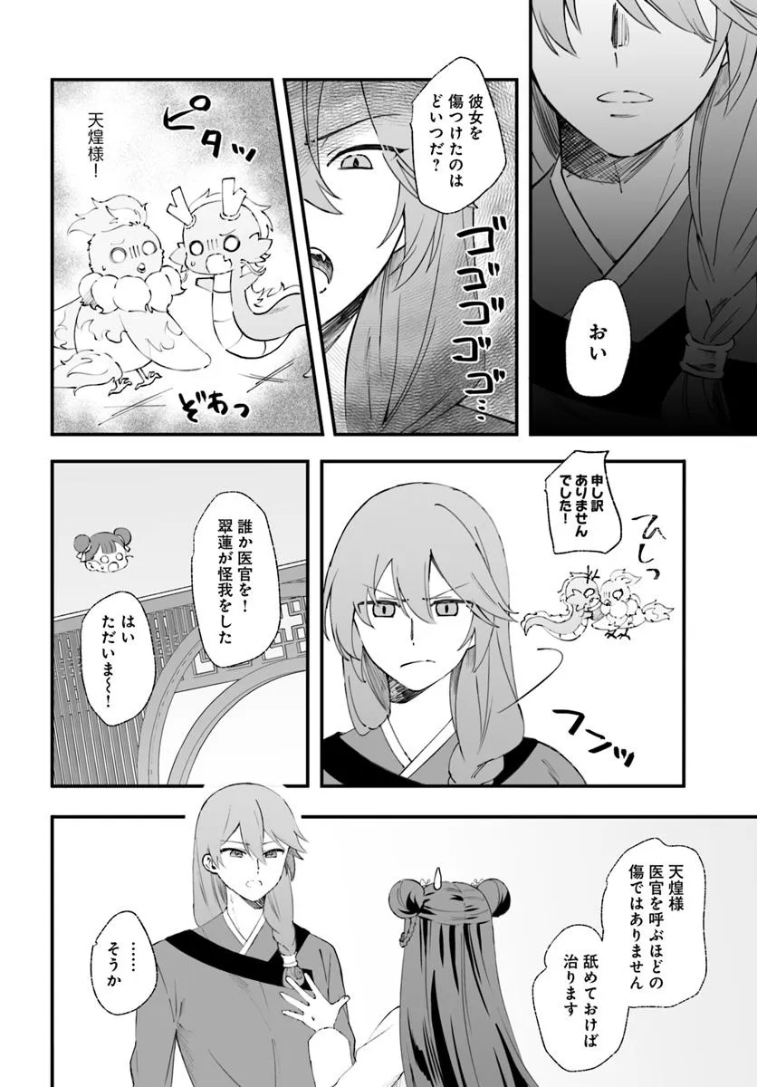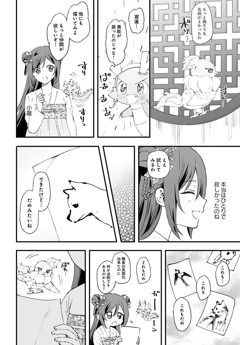 絵を具現化できる力を持ちながら、異能を失い虐げられて育った公主・翠蓮。彼女は異母姉の企てで、恐ろしい噂のある焔国の王に嫁ぐことになってしまう。親や兄弟を惨殺した王の話を聞き、怯える翠蓮だったが……嫁ぎ先で待っていたのは、王のいない穏やかな生活だった。後宮を散策していたところで、翠蓮は純朴で穏やかな青年・煌と出会う。園芸という共通の趣味を知り、距離が近づく二人――。しかし、国王主催の宴の夜に姿を現した煌の正体は焔の国王・煌天だった。戸惑う翠蓮だったが、更に煌天のもう一つの秘密を目の当たりにすることになり――?二重人格な国王と異能の公主の中華風シンデレラストーリー︕