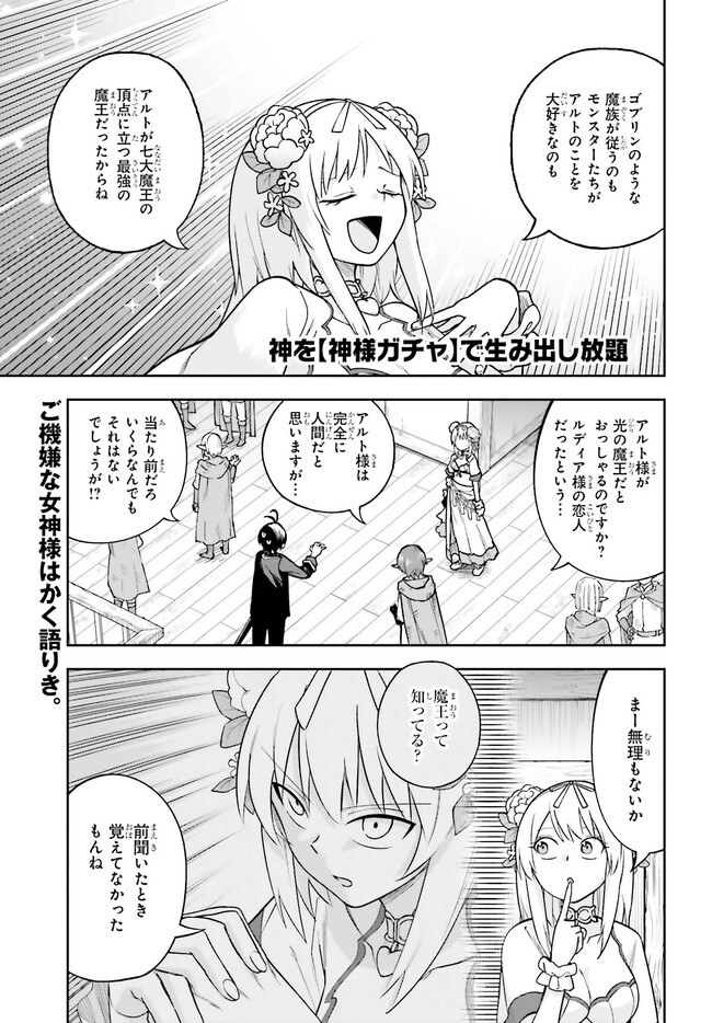 誰もが創造神から【スキル】を与えられる世界。貴族の長男・アルトに与えられたのは、モンスターを召喚するのに多額の課金が必要となる【神様ガチャ】というスキルだった。外れスキル持ちだと断定され、父の反感をかったアルトは全財産をかけてガチャを回す。……しかし、召喚されたのはモンスターではなく、自分のことを女神だと名乗る美少女ルディアだった。