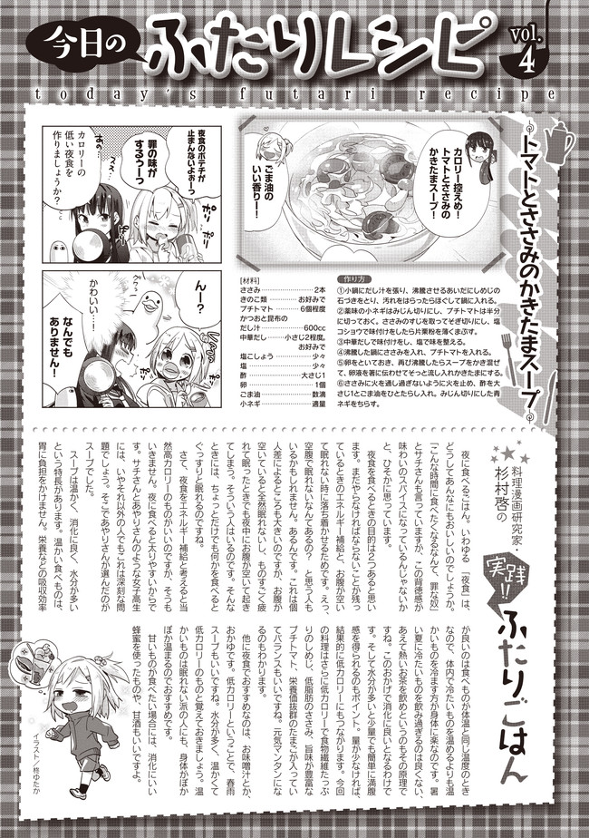 新米姉妹のふたりごはん 第4話 夜食にスープ 新米姉妹のふたりごはん 投稿者 admin - 3年 前に 幸せな読書漫画 新米姉妹のふたりごはん 第4話 夜食にスープ , いいねと共有ボタンをクリックすることを忘れないでください. Manga 新米姉妹のふたりごはん 常に更新されます 無料コミック Comic Top. 他のマンガの更新を読むことを忘れないでください。 マンガコレクションのリスト 無料コミック Comic Top マンガリストメニューにあります. お友達と共有しましょう! Facebook Twitter Pinterest Whatsapp 前のエピソード すべての章 次のエピソード リスト ページング Loading.. 前のエピソード すべての章 次のエピソード リスト ページング お友達と共有しましょう! Facebook Twitter Pinterest Whatsapp お気に入りに追加に続く 1 人 新米姉妹のふたりごはん 親同士が再婚してすぐに海外出張に発ってしまったため、ふたりで生活することになったサチとあやり。言葉数が少なく目つきの鋭いあやりに対し、サチは物怖じし、これからの同居生活に大きな不安を感じてしまう。そんなとき、父親から届いた荷物は生ハムの原木だった! 料理好きなあやりは、原木を見た途端目を輝かせ……。 柊ゆたか(著者) BOOK☆WALKERでセール中!!forgirls女の子の事情女子高校生(JK)料理百合