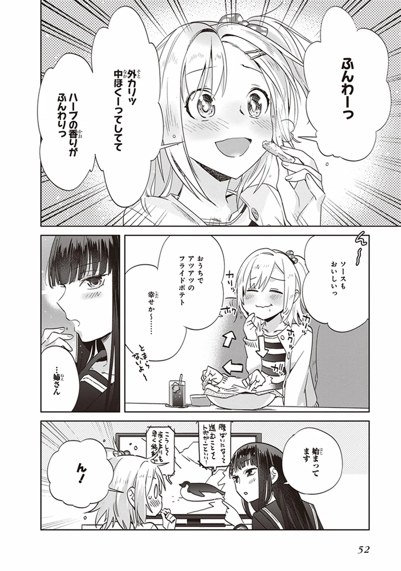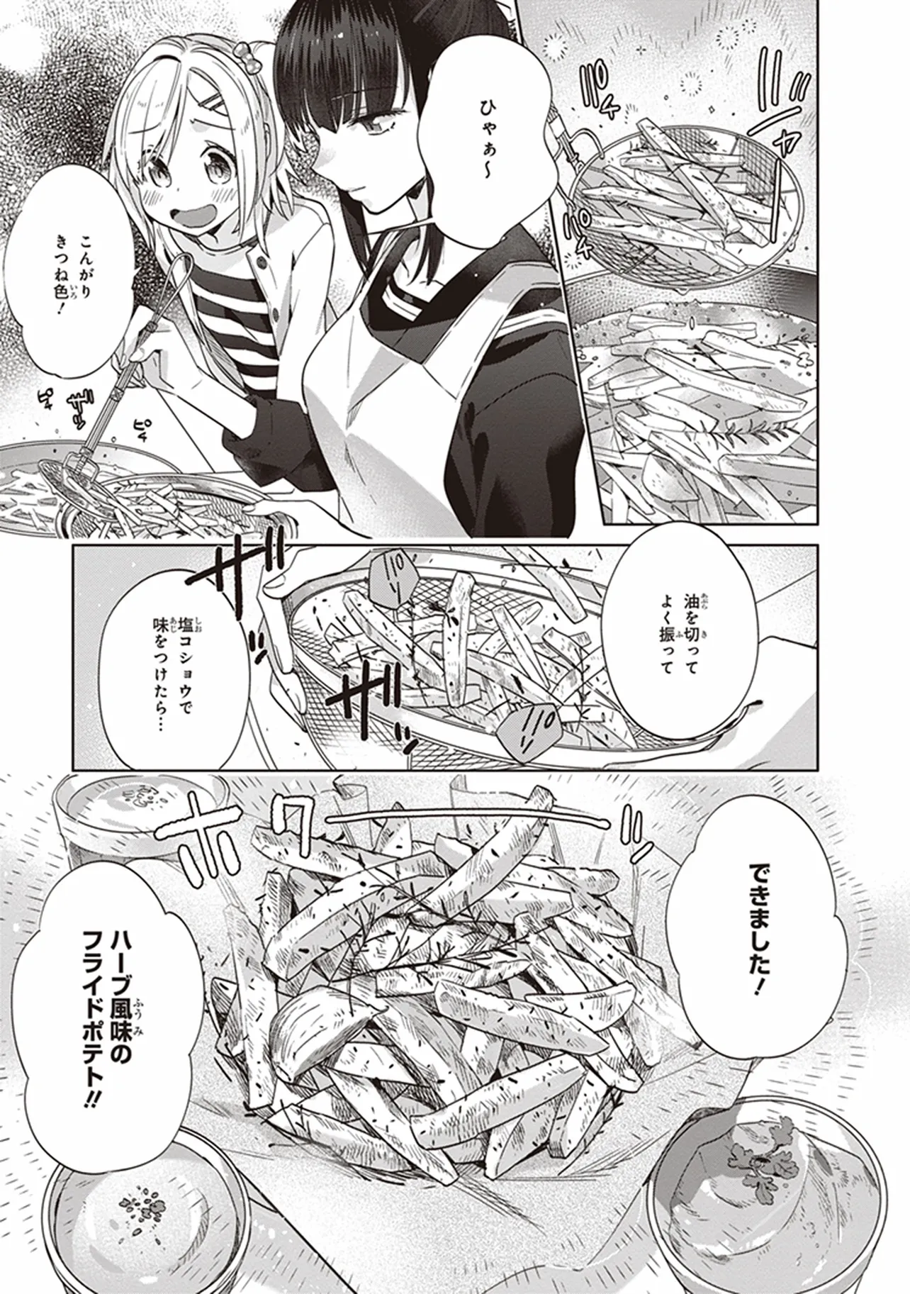新米姉妹のふたりごはん 7品目 フライドポテト 新米姉妹のふたりごはん 投稿者 admin - 8か月 前に 幸せな読書漫画 新米姉妹のふたりごはん 7品目 フライドポテト , いいねと共有ボタンをクリックすることを忘れないでください. Manga 新米姉妹のふたりごはん 常に更新されます 無料コミック Comic Top. 他のマンガの更新を読むことを忘れないでください。 マンガコレクションのリスト 無料コミック Comic Top マンガリストメニューにあります. お友達と共有しましょう! Facebook Twitter Pinterest Whatsapp 前のエピソード すべての章 次のエピソード リスト ページング Loading.. 前のエピソード すべての章 次のエピソード リスト ページング お友達と共有しましょう! Facebook Twitter Pinterest Whatsapp お気に入りに追加に続く 1 人 新米姉妹のふたりごはん 親同士が再婚してすぐに海外出張に発ってしまったため、ふたりで生活することになったサチとあやり。言葉数が少なく目つきの鋭いあやりに対し、サチは物怖じし、これからの同居生活に大きな不安を感じてしまう。そんなとき、父親から届いた荷物は生ハムの原木だった! 料理好きなあやりは、原木を見た途端目を輝かせ……。 柊ゆたか(著者) BOOK☆WALKERでセール中!!forgirls女の子の事情女子高校生(JK)料理百合