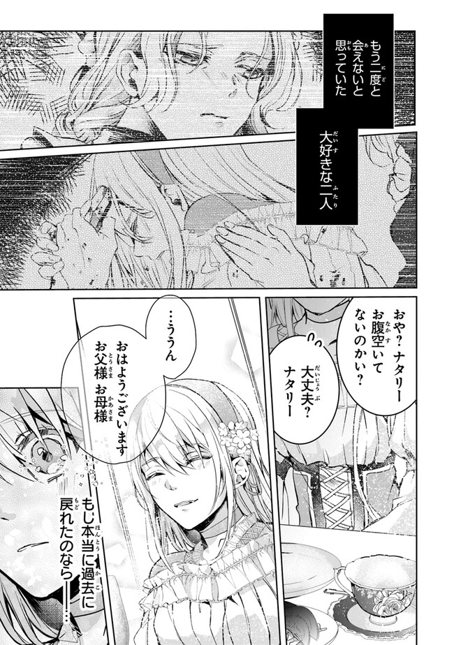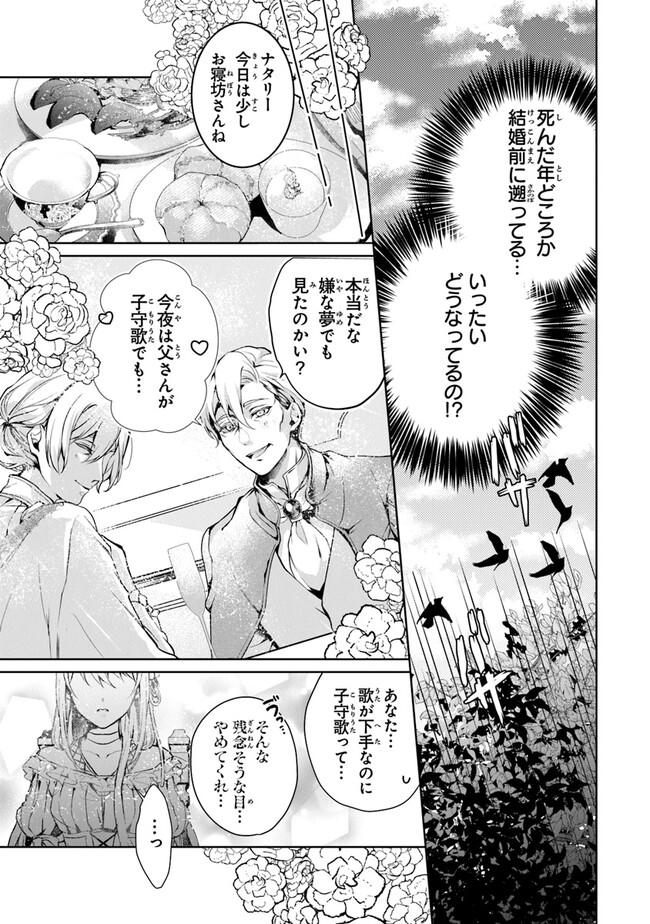 悲劇の逆行令嬢、大好きな家族のために未来を変えてみせます! 冷遇された末、夫ユリウスに「死んでみろ」と煽られ自害した元伯爵令嬢ナタリー。気づくとまだ幸せだった十年以上前に時が戻っていた。病と戦争で両親を失い、国を救った漆黒の騎士ユリウスに嫁がされる――そんな人生はもう嫌! けれど未来を変えようとするたびに予想外の事件に巻き込まれ、なぜかいつもユリウスに助けられて!? 突然「君を守りたい」と言われても困ります……! WEB発大人気逆行転生ストーリー!