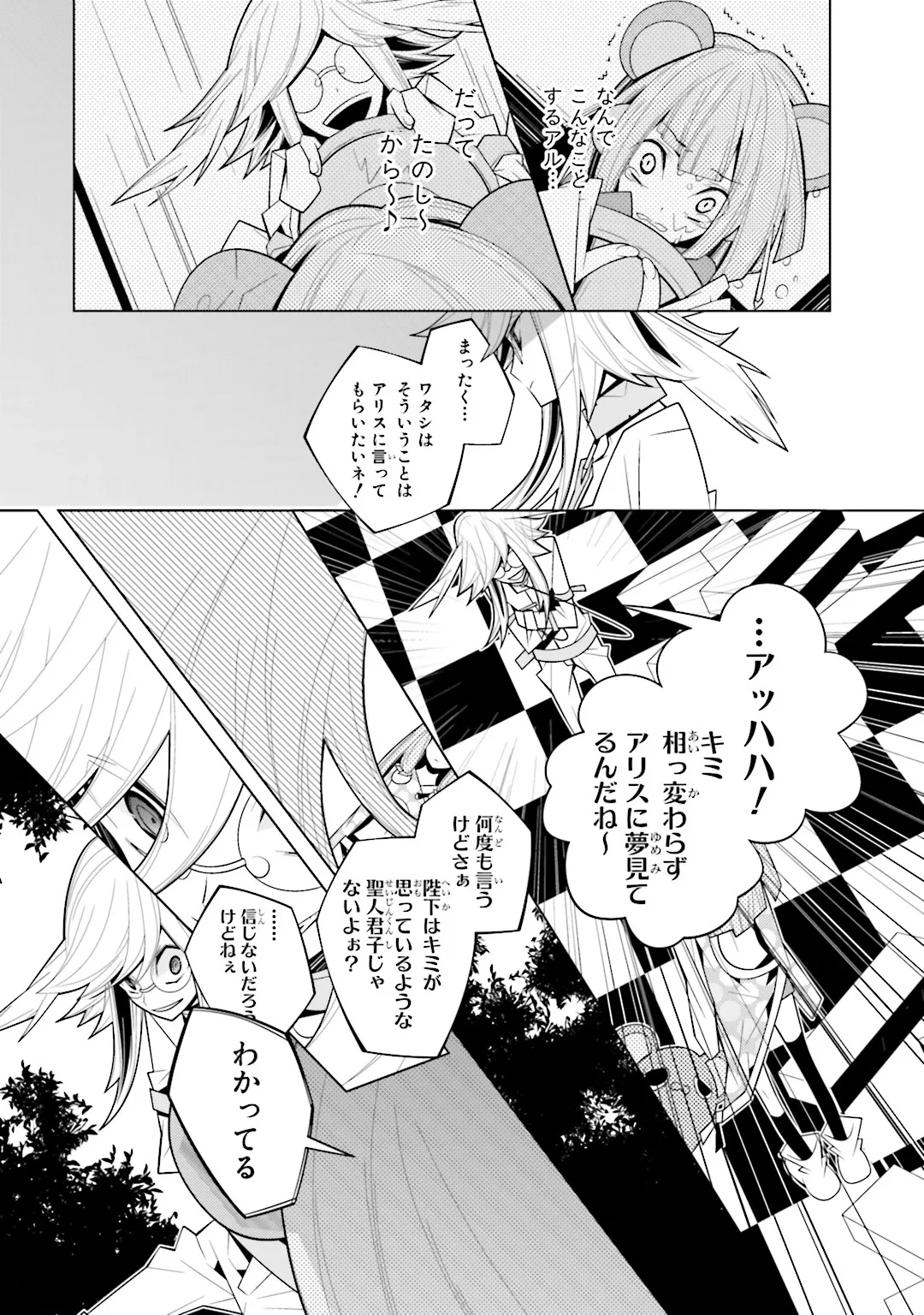 白雪姫×鏡の国のアリス―― 有名童話と物語の衝撃的コラボ!! ある日突然、不思議な世界に連れてこられた主人公・白雪。この世界ではいろいろなモノがアベコベで、文字は逆さだし標識も逆向き…。そんな鏡のような世界から抜け出す方法は1つ。 「アリスを王にすること」 元の世界に戻るため、白雪はアリスと行動を共にし始めるのだが――!?奇妙でワンダーなおとぎファンタジー!