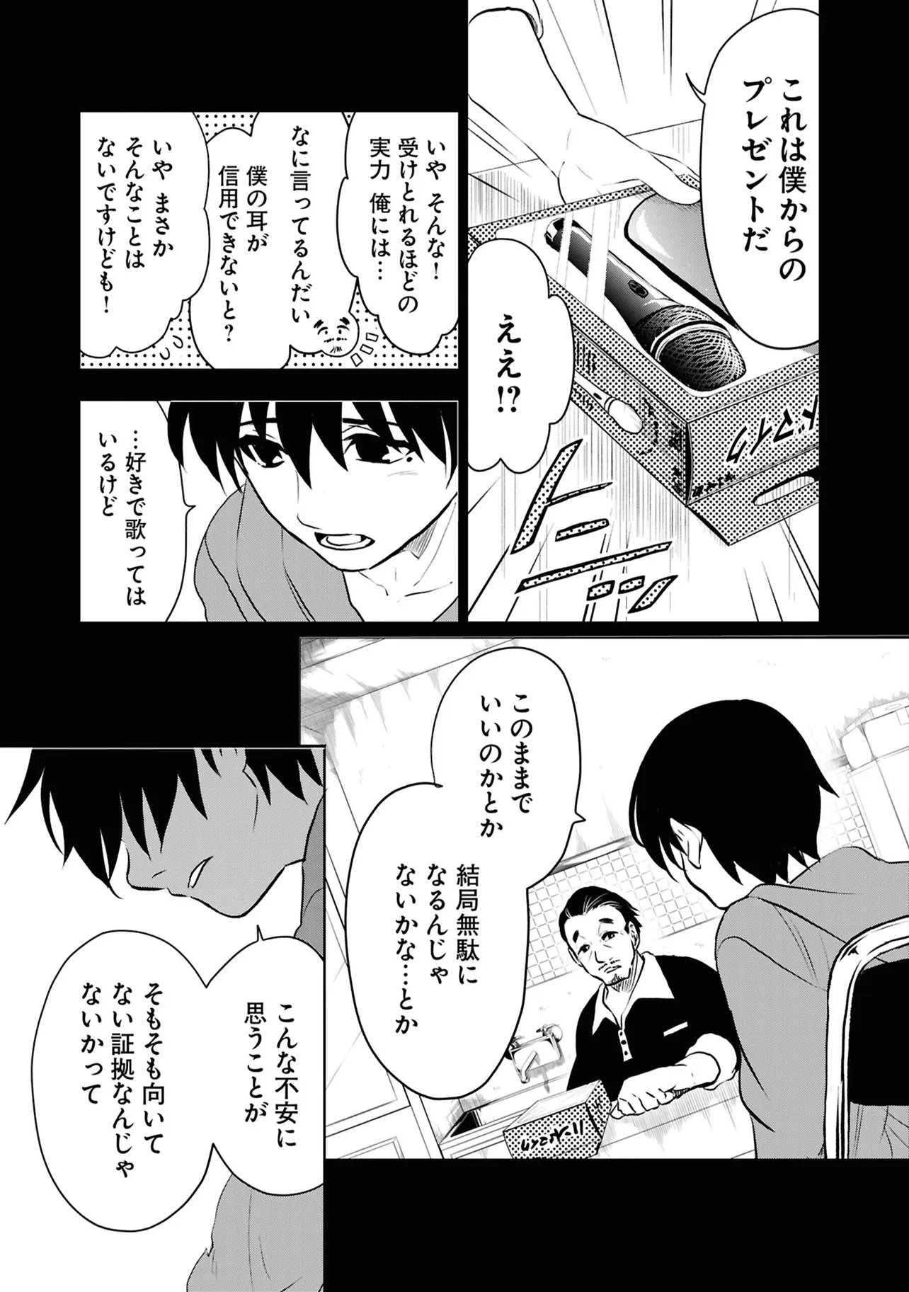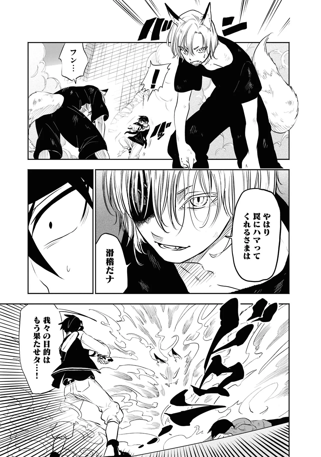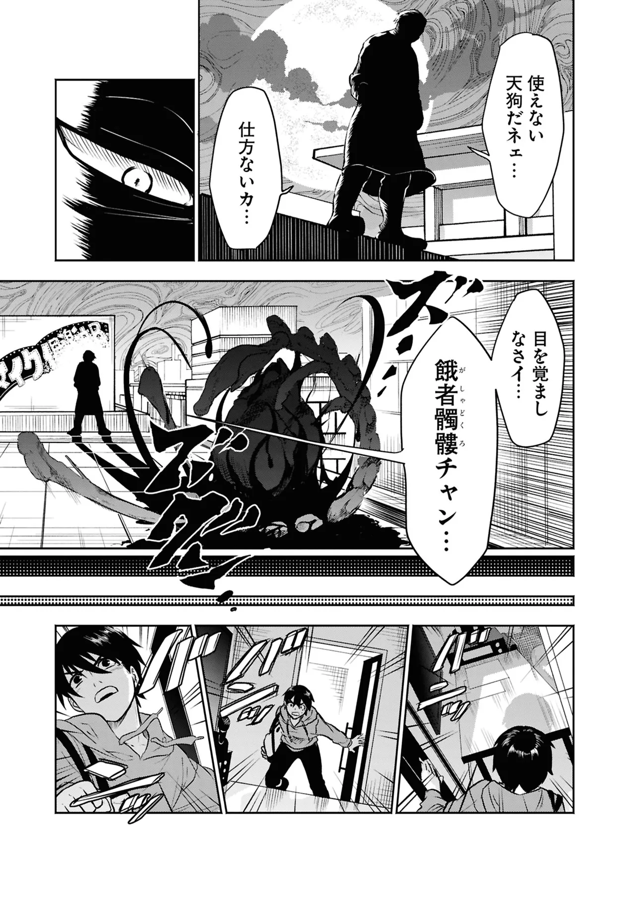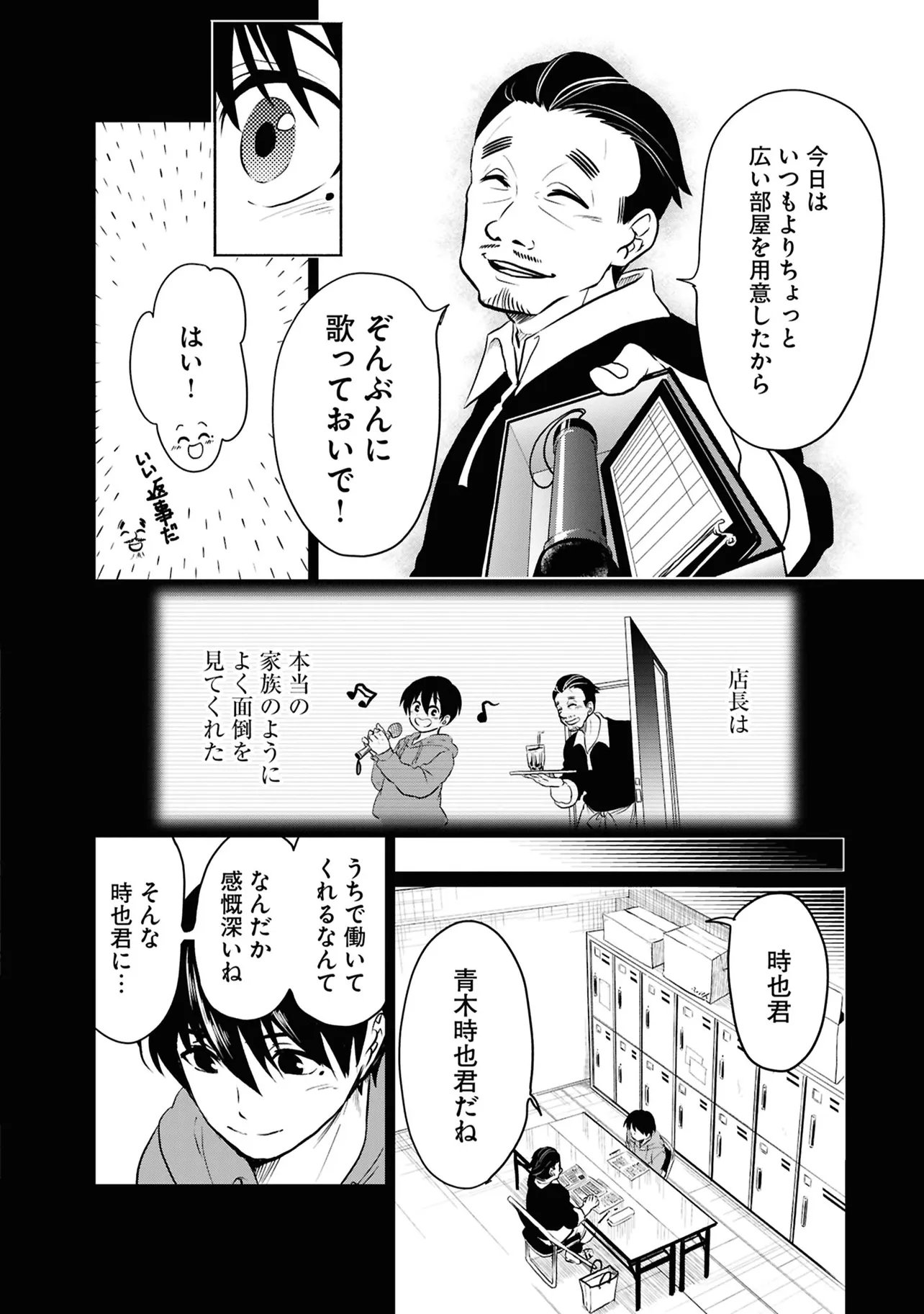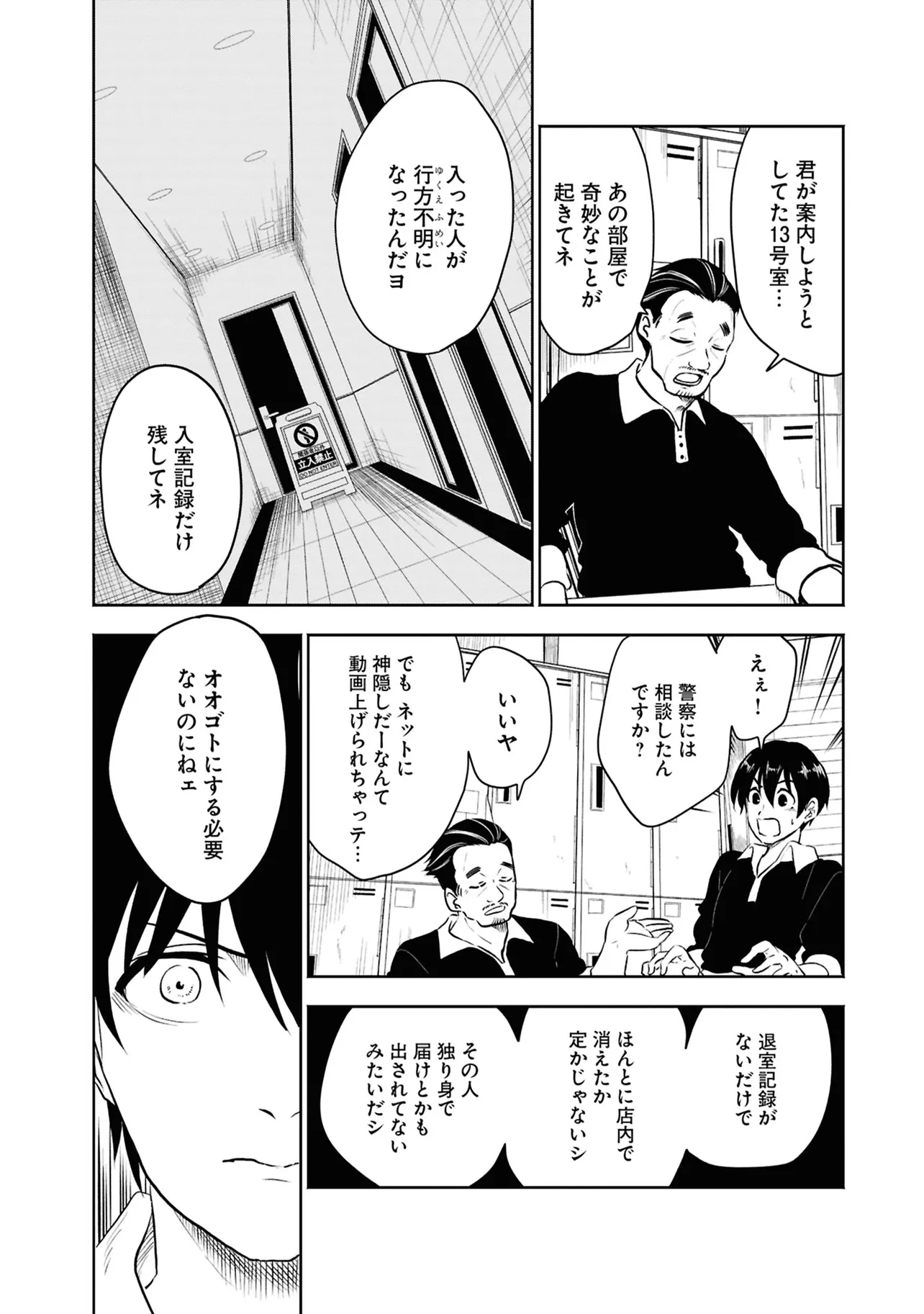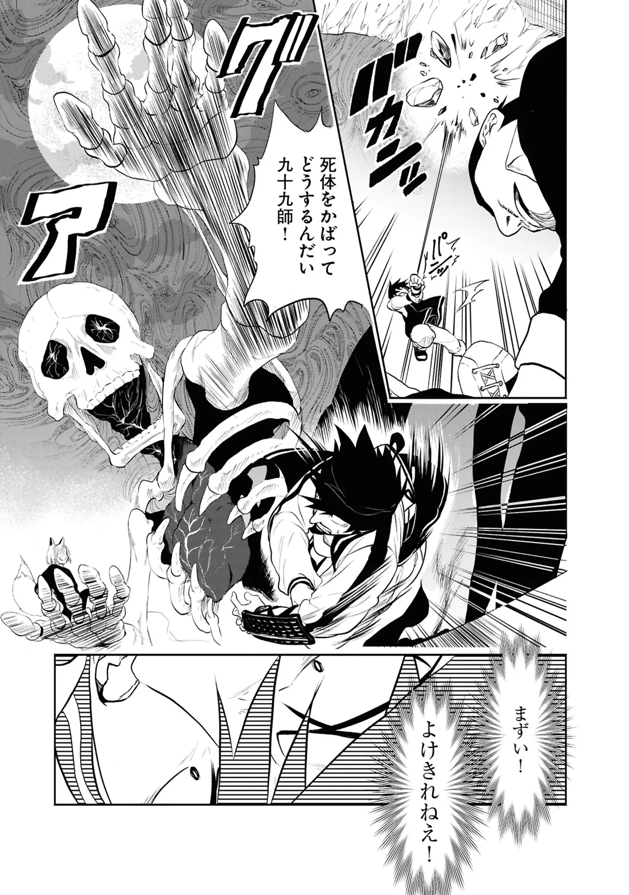 数日前に失踪事件が起こったカラオケ店。 そこでバイトする青木時也はさらなる奇怪な事件に巻きこまれていく。 一方、失踪事件を調査する緑間はその犯人に目星をつけるが正体がわからないままでいた…。 ゲーム実況者「White Tails」のメンバーが登場、 九十九師と妖怪の戦いを描く!!