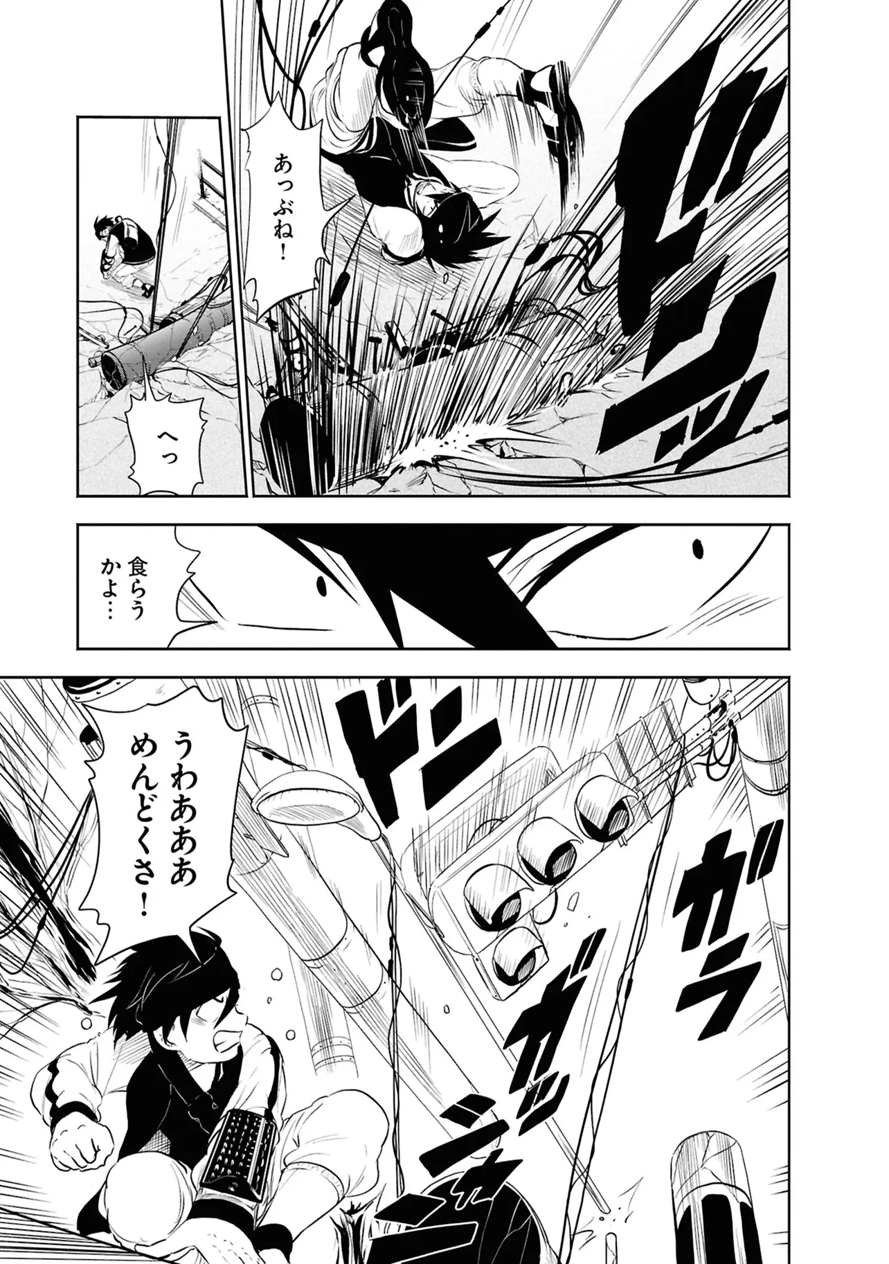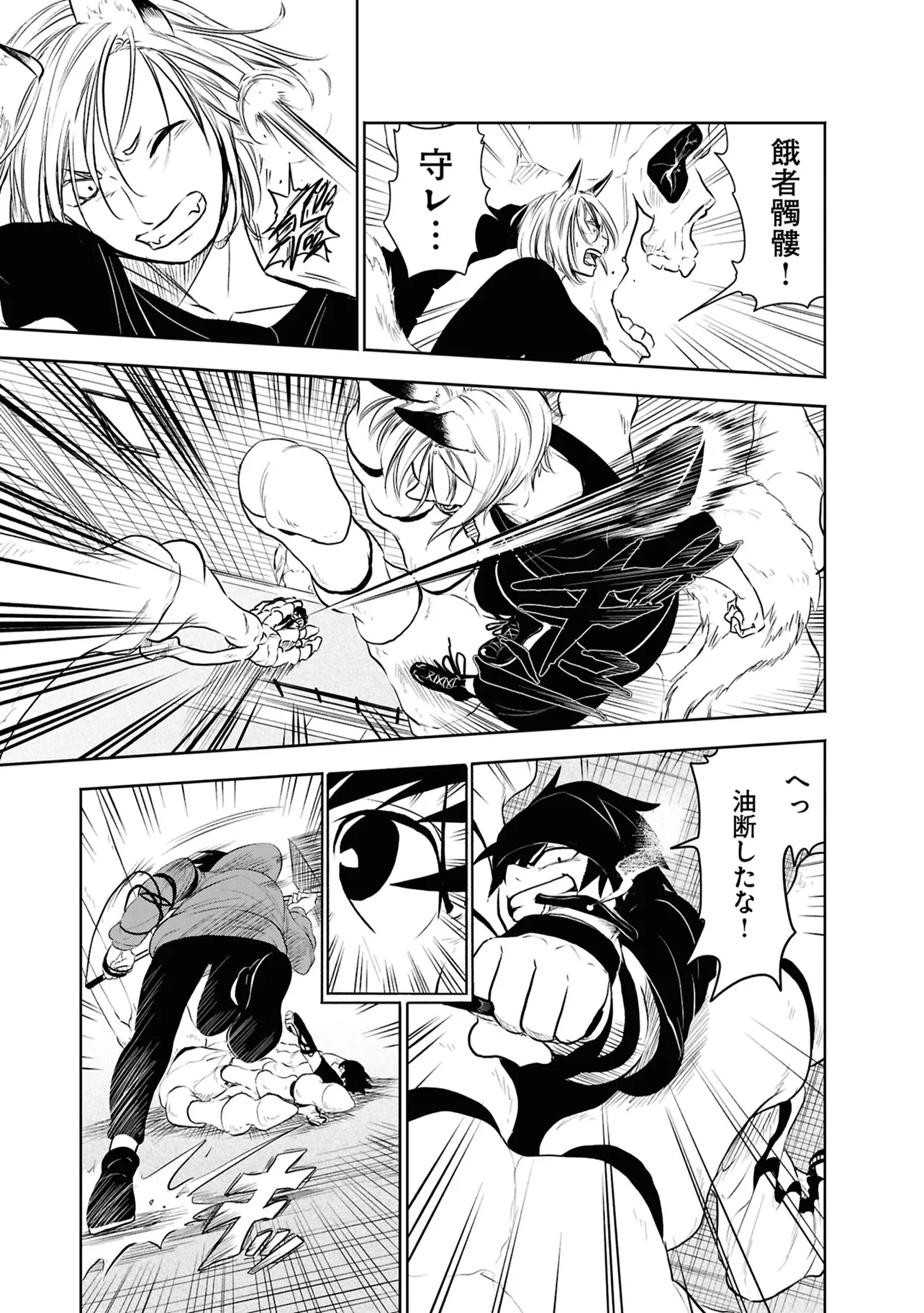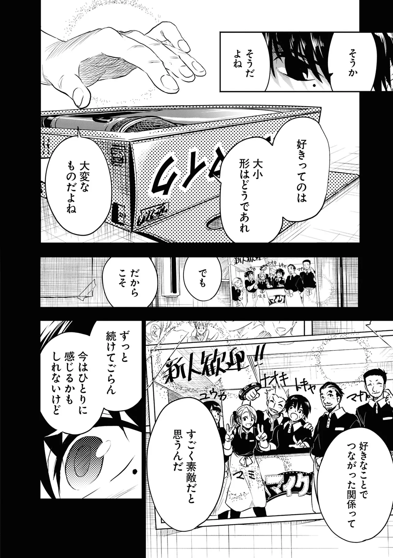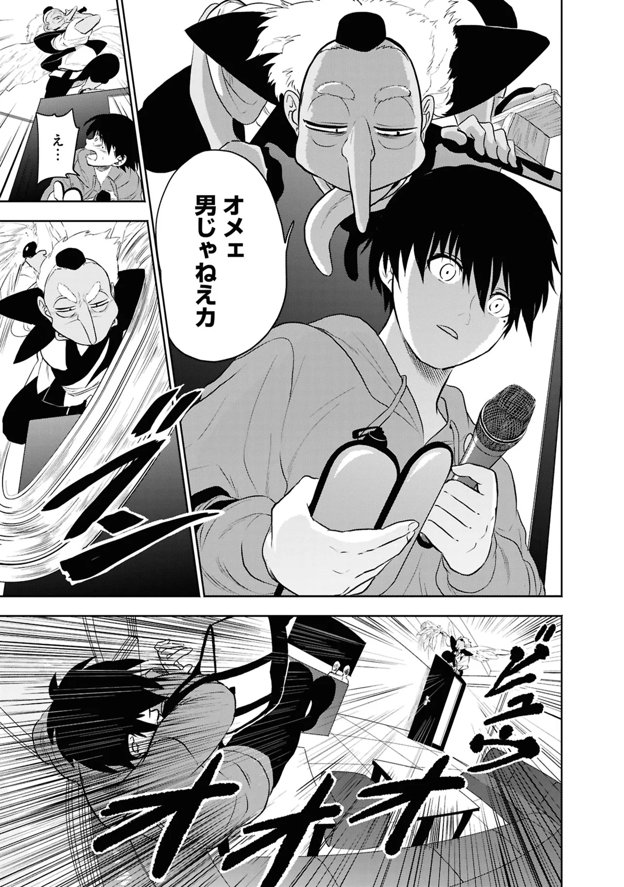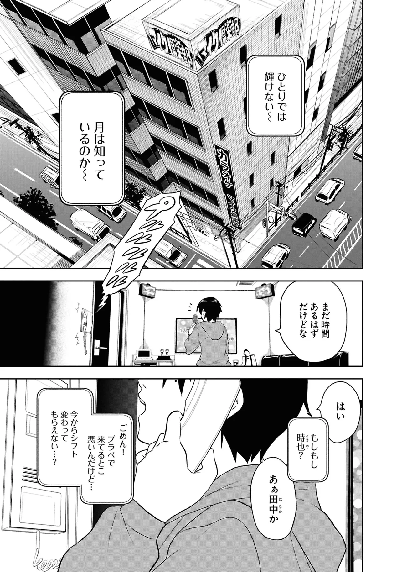数日前に失踪事件が起こったカラオケ店。 そこでバイトする青木時也はさらなる奇怪な事件に巻きこまれていく。 一方、失踪事件を調査する緑間はその犯人に目星をつけるが正体がわからないままでいた…。 ゲーム実況者「White Tails」のメンバーが登場、 九十九師と妖怪の戦いを描く!!