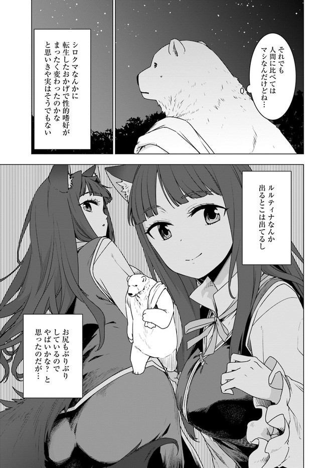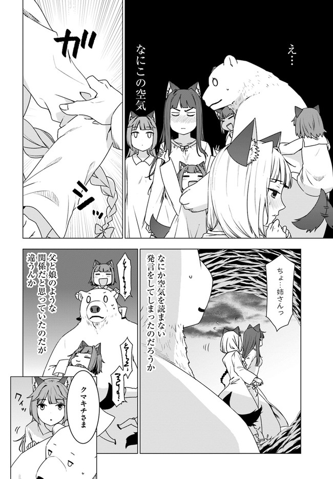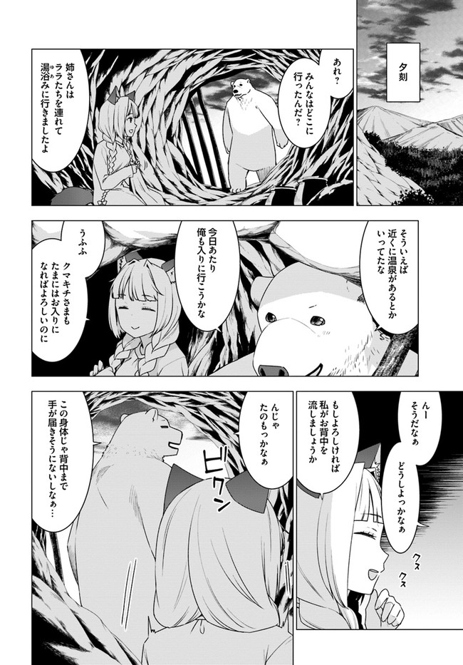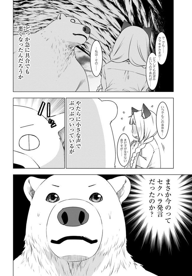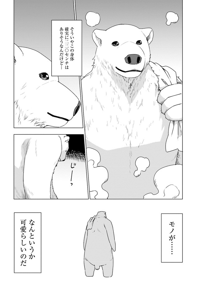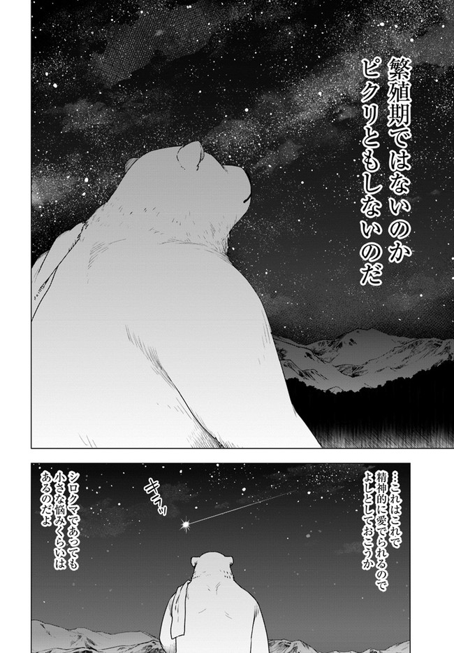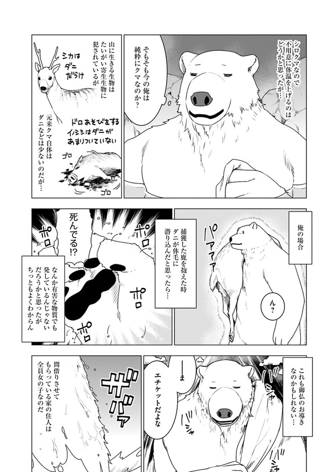 久間田熊吉は、大好きな山登りの途中で谷へと滑落したはずが、気づけばシロクマになって異世界の深い森の中で目を覚ました。 人族に追われて森へと逃げ込んできたウェアウルフの姉妹たちを保護した彼は、その強靭なシロクマの肉体と、前世でつちかったサバイバルの知識を駆使し、危険な森での生活をどんどん快適にしていく――。