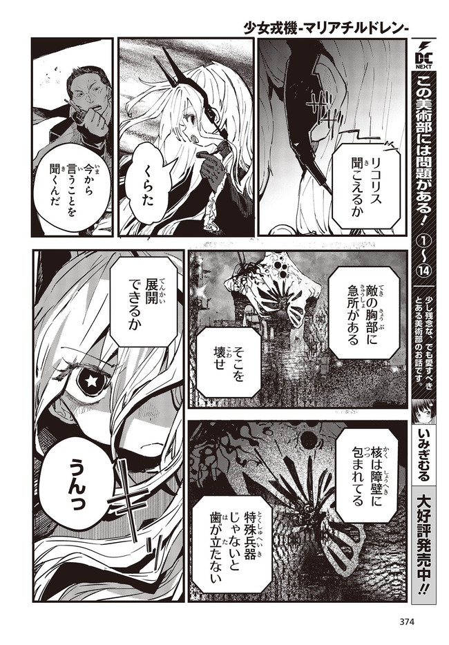 少女戎機 ✦4話① 少女戎機 投稿者 admin - 3年 前に 幸せな読書漫画 少女戎機 ✦4話① , いいねと共有ボタンをクリックすることを忘れないでください. Manga 少女戎機 常に更新されます 無料コミック Comic Top. 他のマンガの更新を読むことを忘れないでください。 マンガコレクションのリスト 無料コミック Comic Top マンガリストメニューにあります. お友達と共有しましょう! Facebook Twitter Pinterest Whatsapp 前のエピソード すべての章 次のエピソード リスト ページング Loading.. 前のエピソード すべての章 次のエピソード リスト ページング お友達と共有しましょう! Facebook Twitter Pinterest Whatsapp お気に入りに追加に続く 0 人 少女戎機 謎の化け物の出現により瘴気に侵された世界。 対抗できるのは聖母と呼ばれる生体兵器だった。 ――これは、美しき少女たちの悲哀の物語。 Dormicum(漫画) SFバトルファンタジーロリ少女戦争近未来