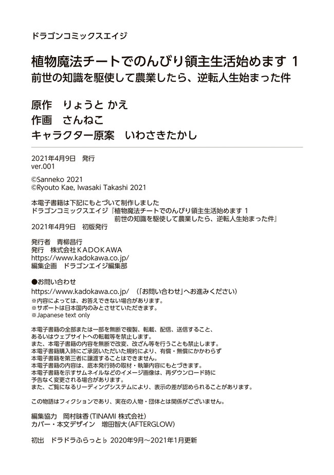 植物魔法チートでのんびり領主生活始めます 前世の知識を駆使して農業したら、逆転人生始まった件 “ニコカド祭り2022 1巻丸ごと公開”