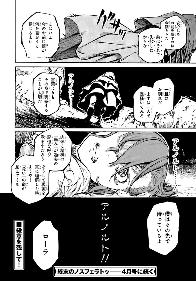 終末のノスフェラトゥ 第1話 終末のノスフェラトゥ 投稿者 admin - 7年 前に 幸せな読書漫画 終末のノスフェラトゥ 第1話 , いいねと共有ボタンをクリックすることを忘れないでください. Manga 終末のノスフェラトゥ 常に更新されます 無料コミック Comic Top. 他のマンガの更新を読むことを忘れないでください。 マンガコレクションのリスト 無料コミック Comic Top マンガリストメニューにあります. お友達と共有しましょう! Facebook Twitter Pinterest Whatsapp 前のエピソード すべての章 次のエピソード リスト ページング Loading.. 前のエピソード すべての章 次のエピソード リスト ページング お友達と共有しましょう! Facebook Twitter Pinterest Whatsapp お気に入りに追加に続く 0 人 終末のノスフェラトゥ 不死者(ノスフェラトゥ)は、人類の敵か?味方か? 吸血鬼バトルアクション開幕!! かつて、厄災を振りまいた不死者。老いることなく、どんな傷もたちどころに癒え、増殖を続けた彼らは、突如として歴史からその姿を消した。そして百年の時が流れ、森の中で一人の少女が目覚める―――。 「Fate/Zero」「タブー・タトゥー」の真じろうが贈る、究極の吸血鬼バトルアクション!! 真じろう(作者) バトルアクションファンタジー