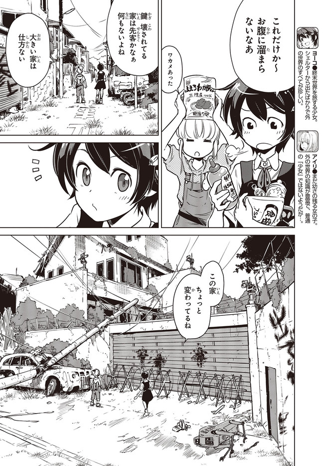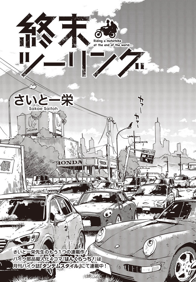 終末ツーリング 第3話 世田谷① 終末ツーリング 投稿者 admin - 4年 前に 幸せな読書漫画 終末ツーリング 第3話 世田谷① , いいねと共有ボタンをクリックすることを忘れないでください. Manga 終末ツーリング 常に更新されます 無料コミック Comic Top. 他のマンガの更新を読むことを忘れないでください。 マンガコレクションのリスト 無料コミック Comic Top マンガリストメニューにあります. お友達と共有しましょう! Facebook Twitter Pinterest Whatsapp 前のエピソード すべての章 次のエピソード リスト ページング Loading.. 前のエピソード すべての章 次のエピソード リスト ページング お友達と共有しましょう! Facebook Twitter Pinterest Whatsapp お気に入りに追加に続く 4 人 終末ツーリング ツーリングの名所を走る1台のオフロードバイク。 箱根で富士山を眺め、横浜ベイブリッジで釣りをして、有明の東京ビッグサイトへ向かう。 2人の少女がタンデムでバイク旅を楽しんでいるように見えるが周囲の景観はひどく荒れ果てていて――。 誰もいない終末世界を2人の少女がセローでトコトコ駆け回る異色のツーリングコミックがここに開幕! 世界が終わってもバイク旅は終わらない。 さいとー栄(著者) BOOK☆WALKERでセール中!!SFツーリングバイク旅行異世界