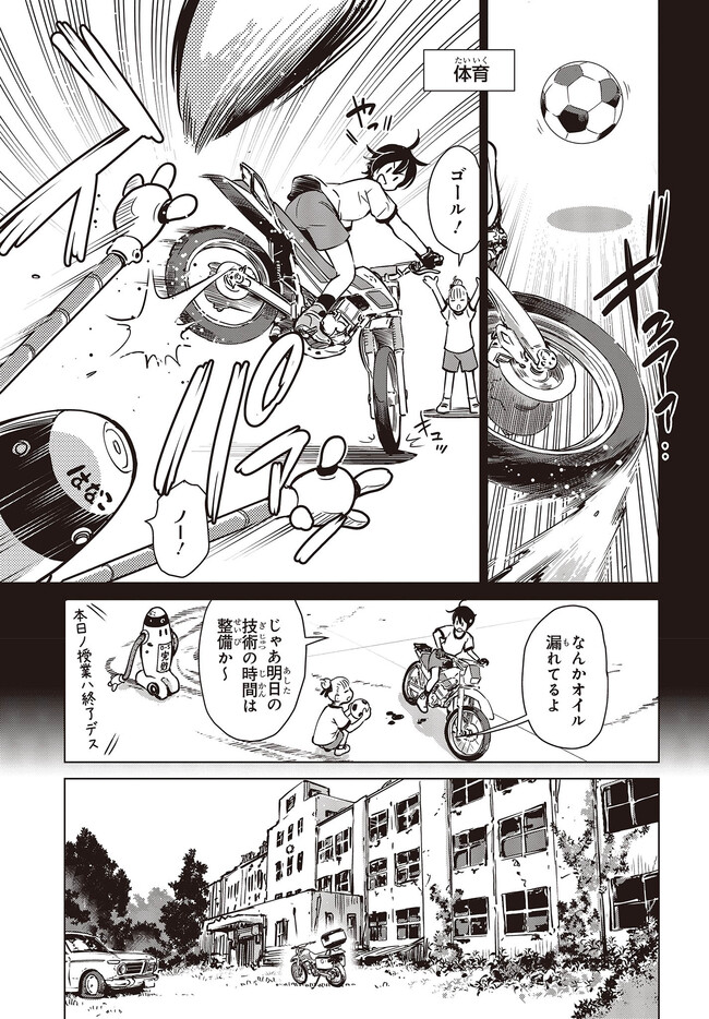 ツーリングの名所を走る1台のオフロードバイク。 箱根で富士山を眺め、横浜ベイブリッジで釣りをして、有明の東京ビッグサイトへ向かう。 2人の少女がタンデムでバイク旅を楽しんでいるように見えるが周囲の景観はひどく荒れ果てていて――。 誰もいない終末世界を2人の少女がセローでトコトコ駆け回る異色のツーリングコミックがここに開幕! 世界が終わってもバイク旅は終わらない。