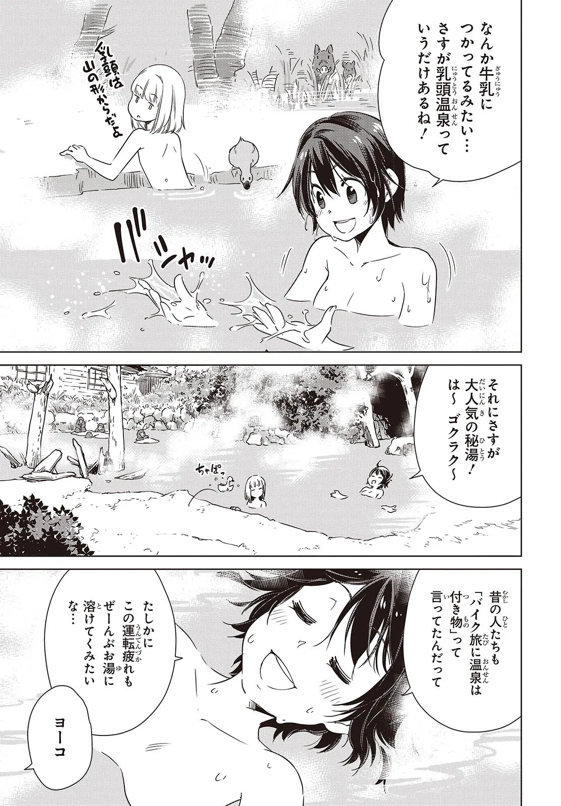終末ツーリング “第44話 秋田②” 終末ツーリング 投稿者 admin - 9か月 前に 幸せな読書漫画 終末ツーリング “第44話 秋田②” , いいねと共有ボタンをクリックすることを忘れないでください. Manga 終末ツーリング 常に更新されます 無料コミック Comic Top. 他のマンガの更新を読むことを忘れないでください。 マンガコレクションのリスト 無料コミック Comic Top マンガリストメニューにあります. お友達と共有しましょう! Facebook Twitter Pinterest Whatsapp 前のエピソード すべての章 次のエピソード リスト ページング Loading.. 前のエピソード すべての章 次のエピソード リスト ページング お友達と共有しましょう! Facebook Twitter Pinterest Whatsapp お気に入りに追加に続く 4 人 終末ツーリング ツーリングの名所を走る1台のオフロードバイク。 箱根で富士山を眺め、横浜ベイブリッジで釣りをして、有明の東京ビッグサイトへ向かう。 2人の少女がタンデムでバイク旅を楽しんでいるように見えるが周囲の景観はひどく荒れ果てていて――。 誰もいない終末世界を2人の少女がセローでトコトコ駆け回る異色のツーリングコミックがここに開幕! 世界が終わってもバイク旅は終わらない。 さいとー栄(著者) BOOK☆WALKERでセール中!!SFツーリングバイク旅行異世界