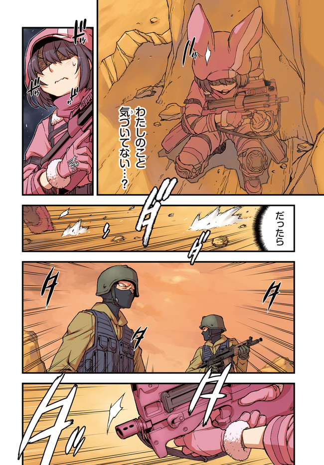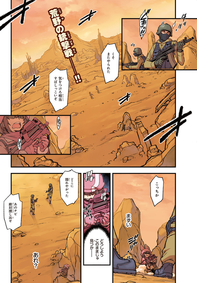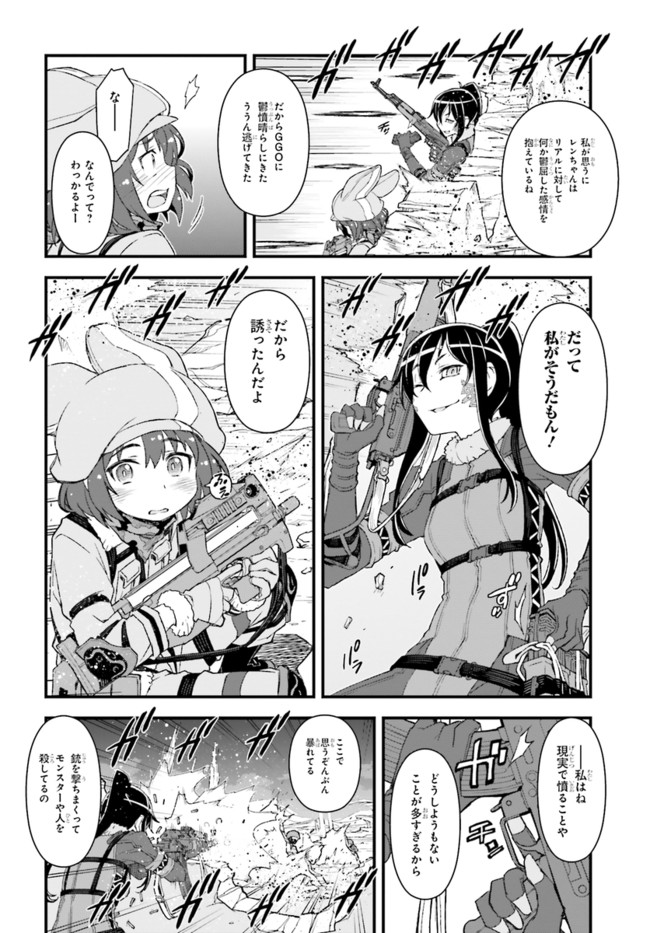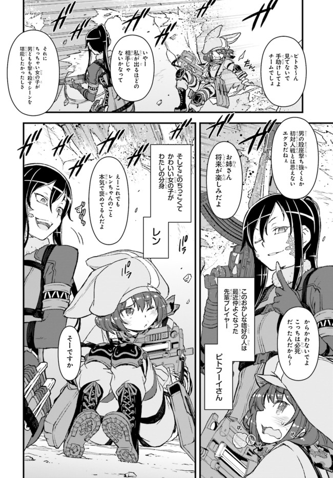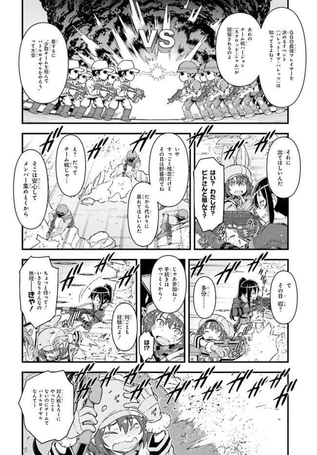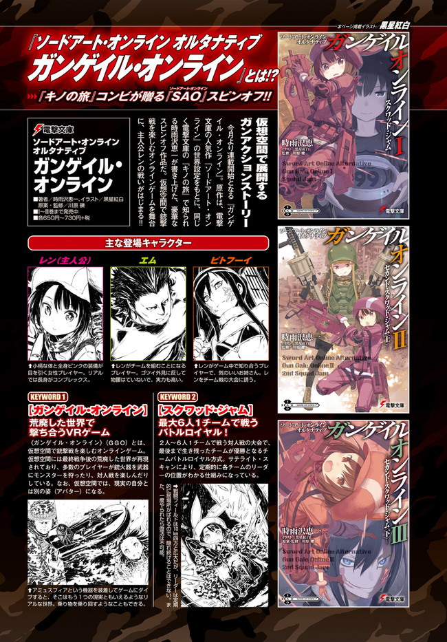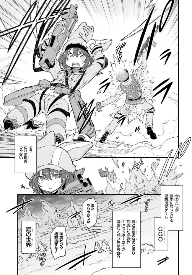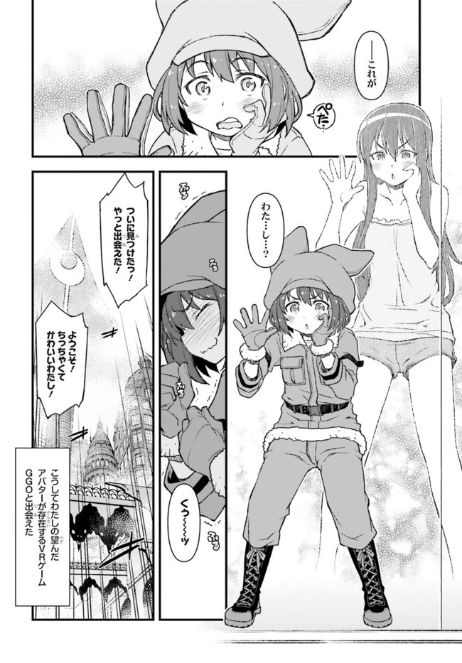 『ソードアート・オンライン』(SAO)の世界設定をもとに作り上げられたスピンアウト小説『ソードアート・オンライン オルタナティブ ガンゲイル・オンライン』をコミカライズ!物語の舞台となるのは、『SAO』の《ファントム・バレット編》のなかで描かれたVR(ヴァーチャルリアリティ)ゲーム、《ガンゲイル・オンライン》。このゲームでは、戦争により荒廃した未来世界にダイブしたプレイヤーが、銃火器を武器にモンスターやほかのプレイヤーと戦っていく。主人公は、そんな殺伐としたゲームとは無縁の生活を送っていた女子大生・小比類巻香蓮。長身がコンプレックスの彼女は、《ガンゲイル・オンライン》でかわいくて小柄なアバター(ゲーム中のキャラクター)を手に入れたことから、もう1人の自分「レン」として、ゲームの世界での生活を楽しむようになる。そして、いつしかチーム対抗のバトルロイヤル戦《スクワット・ジャム》に参加することになり……!?