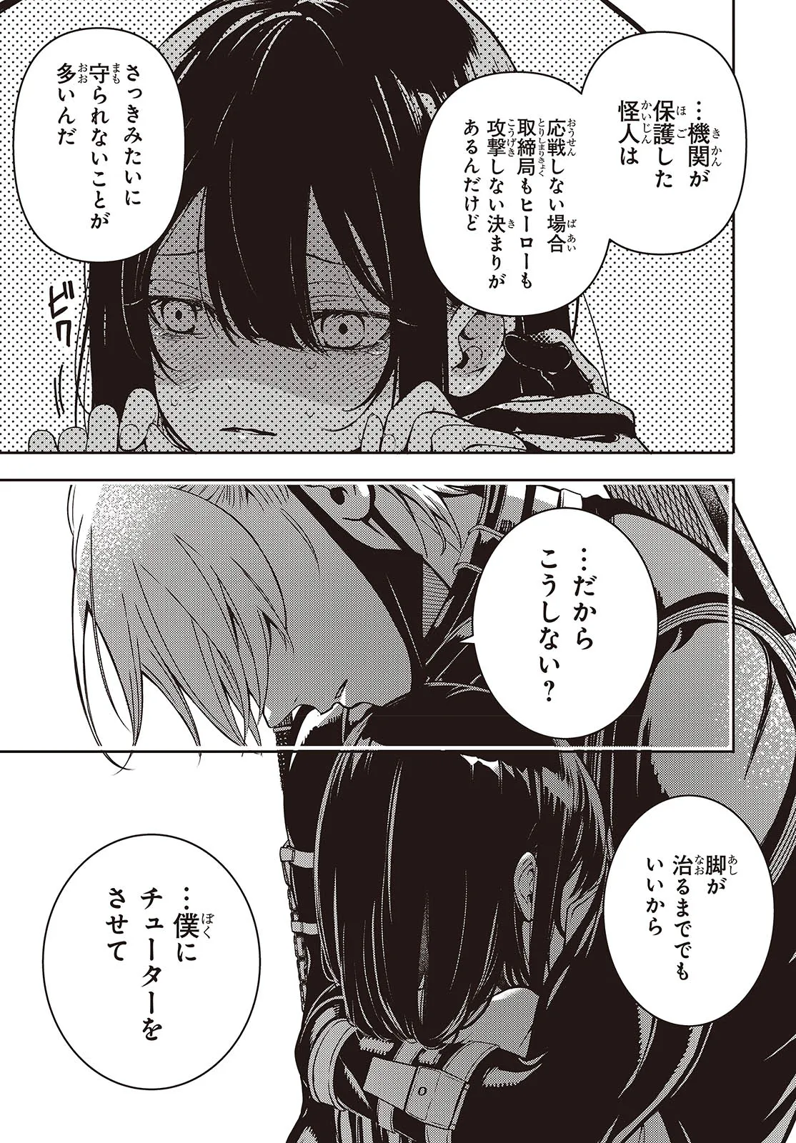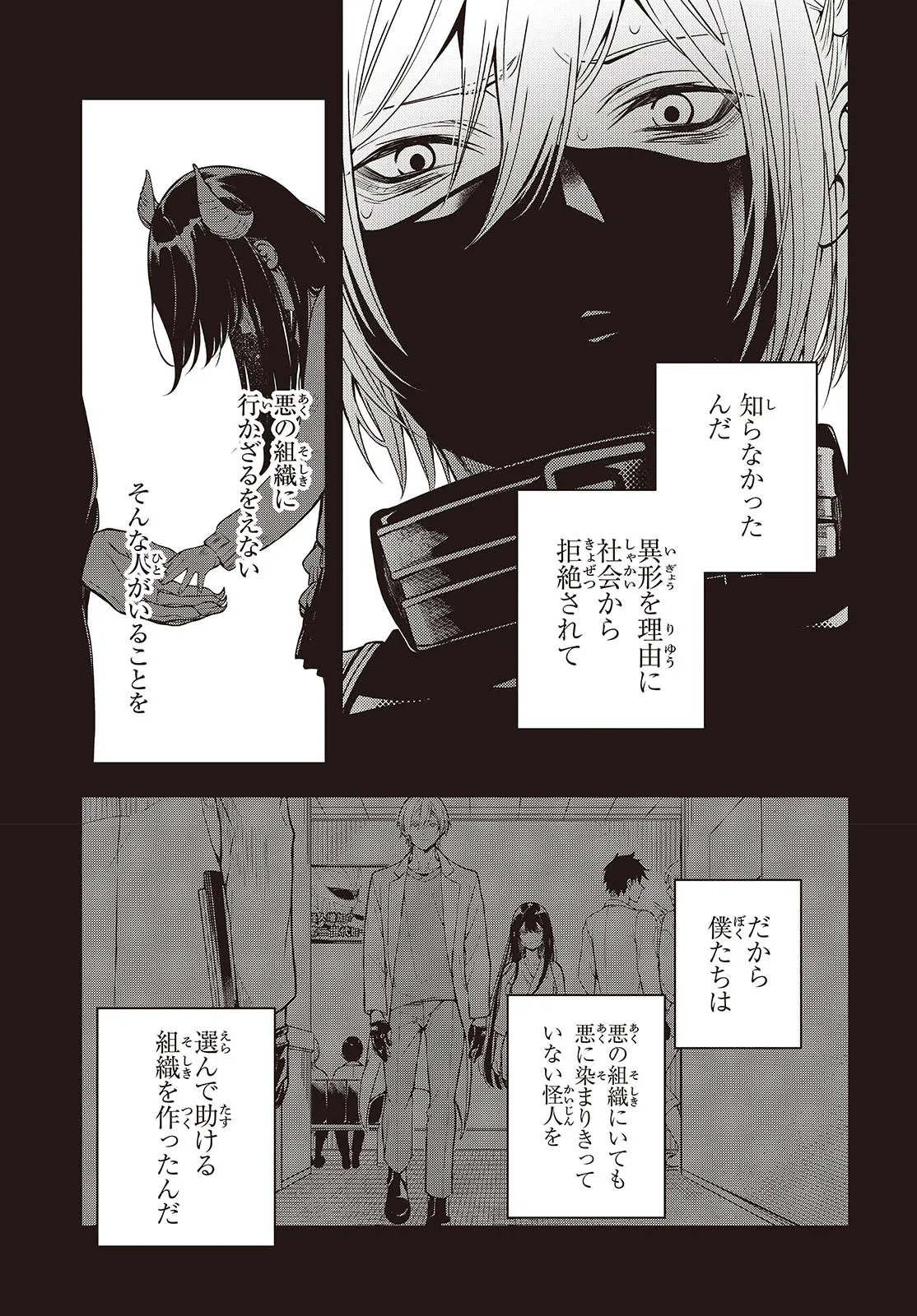 ヒーローに敗北した悪の怪人・ルリオ。 少女の行く末は、冷たい死――ではなく、更生施設だった!! 不信感を露わにするルリオだが、次第に担当職員・ユキヒトに暖かく心を溶かされていく。 しかし、更生施設にはとある思惑があって……
