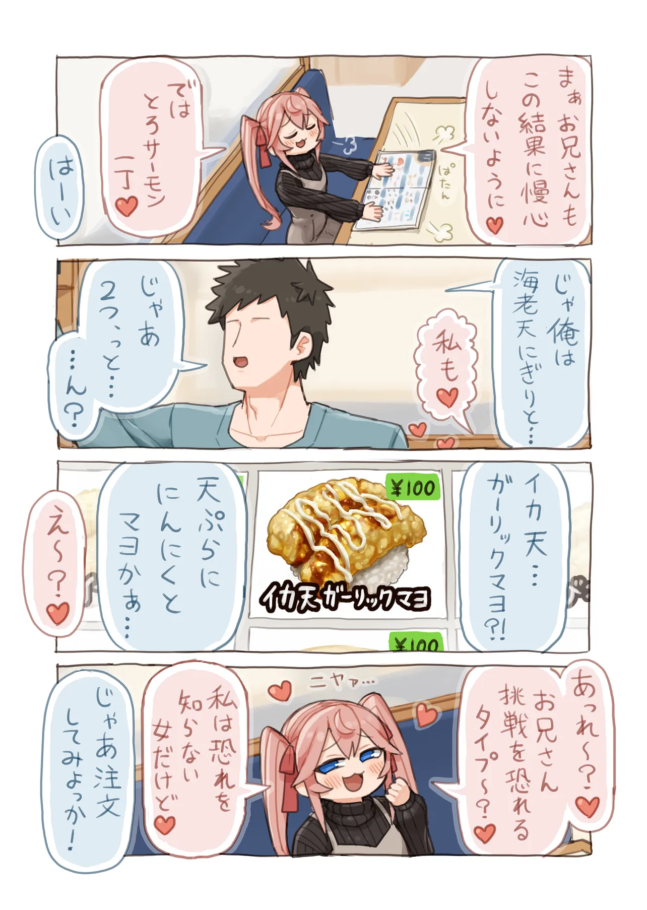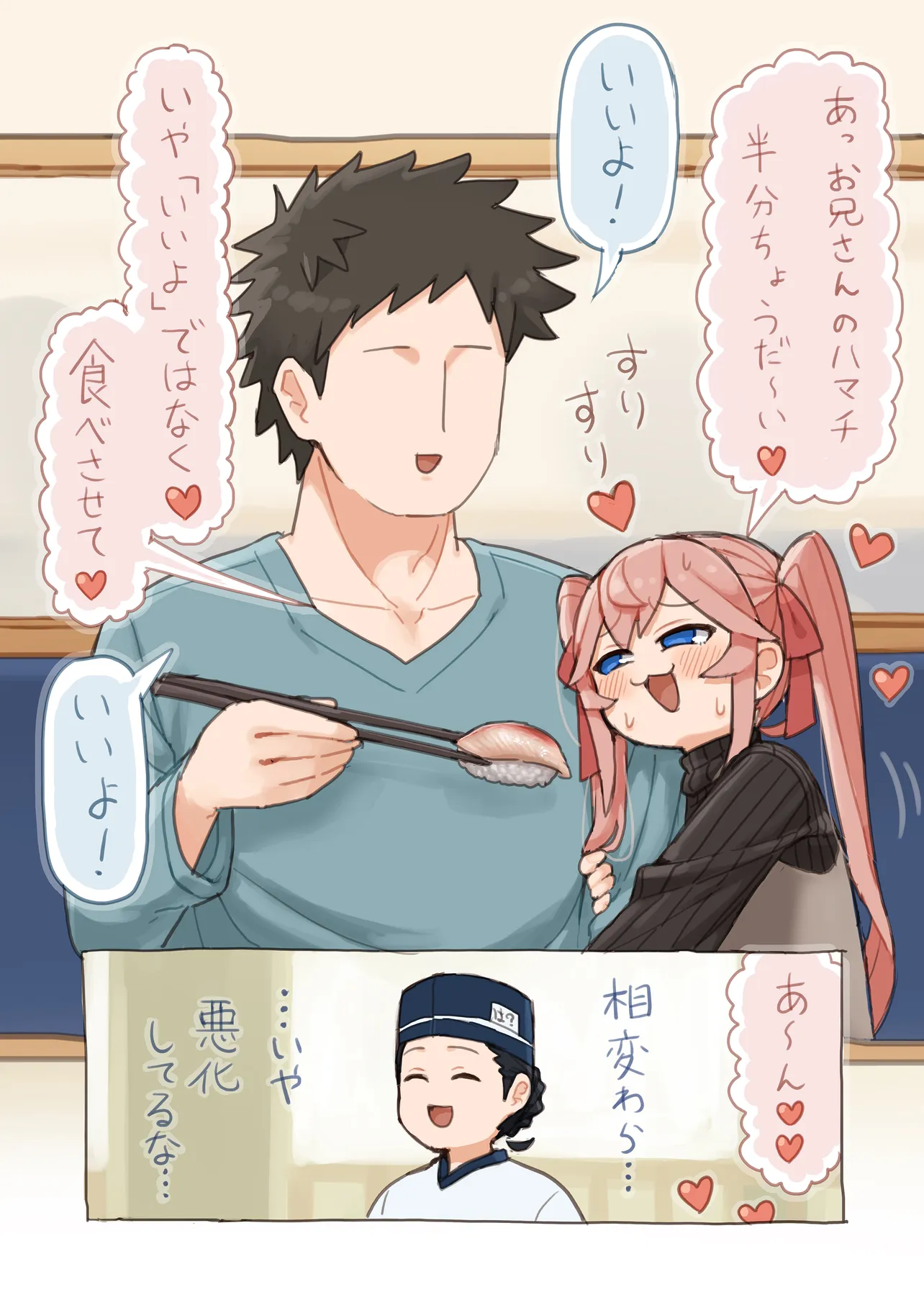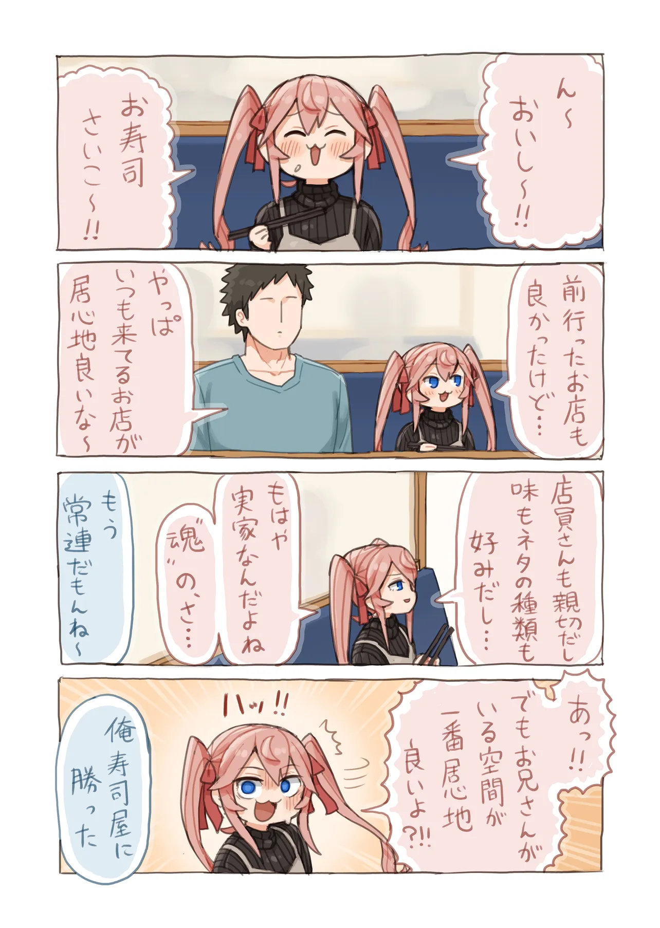 Twitterで大人気! ナマイキ少女とお兄さんの、お寿司でつながる物語が短期集中連載! ★この作品は、皆さんの再生数、お気に入り数によって今後の継続が決まります。 気に入ったらぜひお気に入り登録して、コメントなどで応援してください!