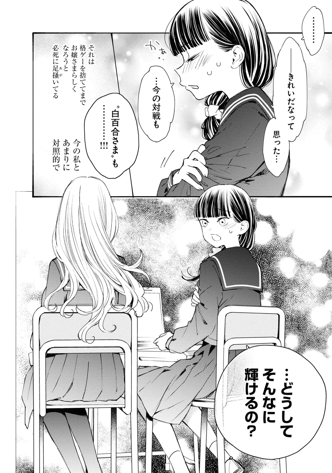 お嬢さま学校に入学した綾は袋ラーメンを愛する庶民。 そんな彼女は校内一のお嬢さま「白百合さま」に憧れていた。 ある日彼女は、「白百合さま」が対戦格闘ゲームに熱く興じているところを目撃する。 学内で格ゲーをしていることを口止めされた綾だったが、格ゲー特有のタコで経験者だとバレてしまい、 綾は「白百合さま」から対戦を望まれるのであった。 お嬢さまたちの熱き格ゲーの幕開け!