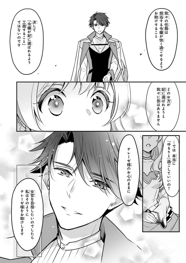日夜節約に励む貧乏侯爵家の令嬢・テレーゼに「大公の妃候補に」との声がかかる。 貧乏貴族である自分が妃なんてありえない!と断るが、 「候補者には十万ペイル支給」「侍女や女官への雇用あり」という好条件!? 憧れの女官になれるかも知れない!と思ったテレーゼは、大公妃候補としてお城に行くことに…。 だが、城へ向かうとわがままな令嬢達とのお妃争奪戦が待っていた! 果たしてテレーゼは憧れの職業に就けるのか、はたまた大公妃としてのし上がるのか!? 「なろう」発、大人気小説の破天荒令嬢の成り上がり(!?)コミカライズ!