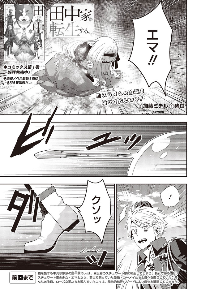 田中家、転生する。 第13幕 田中家、転生する。 投稿者 admin - 2年 前に 幸せな読書漫画 田中家、転生する。 第13幕 , いいねと共有ボタンをクリックすることを忘れないでください. Manga 田中家、転生する。 常に更新されます 無料コミック Comic Top. 他のマンガの更新を読むことを忘れないでください。 マンガコレクションのリスト 無料コミック Comic Top マンガリストメニューにあります. お友達と共有しましょう! Facebook Twitter Pinterest Whatsapp 前のエピソード すべての章 次のエピソード リスト ページング Loading.. 前のエピソード すべての章 次のエピソード リスト ページング お友達と共有しましょう! Facebook Twitter Pinterest Whatsapp お気に入りに追加に続く 9 人 田中家、転生する。 猫をこよなく愛する平凡な一家・田中家は、ある日大地震により全滅してしまった。 だが、目を覚ました瞬間、田中家全員異世界の貴族一家スチュワート家に転生していた。 外見は西洋風の出で立ちでありながら、前世である純日本人としての記憶も持ち合わせている一家は、とまどいながらも異世界の暮らしになじんでいったが――。 kaworu(キャラクターデザイン)加藤ミチル(漫画)猪口(原作) forgirlsここではないどこかへドラゴンノベルスファンタジーフロースコミック小説家になろう猫異世界転生虫