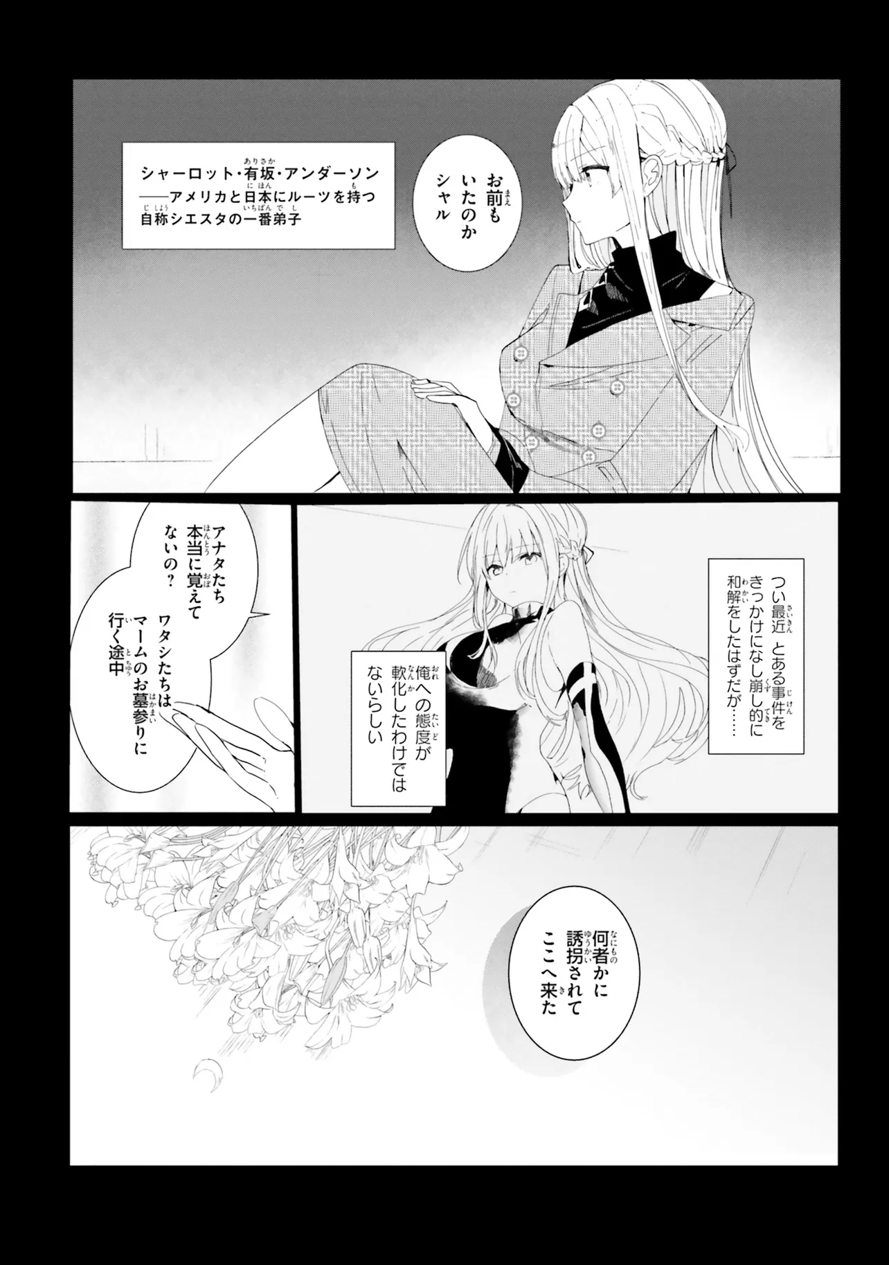 これは、探偵が"まだ死んでいなかった"頃の一幕。 高校三年生の俺・君塚君彦は、かつて名探偵の助手だった。 シエスタを失ってから一年が経ち、夏凪や斎川と出会い、シャルと再会した俺は、ある日、彼女たちとともに《シエスタ》に誘拐される。 そこで語られるのは俺が『忘れている』らしいシエスタの死の真相。 探偵と助手の長くて短い旅の記録。 地上一万メートルの上空で始まる少年と少女の冒険譚だった。 「君たちには、どうか見届けてほしい。私が挑んだ最後の戦いを──」 そうしてシエスタは告げる。 まだ誰も知らない真実を。 どうして探偵がもう、死んでいるのかを。
