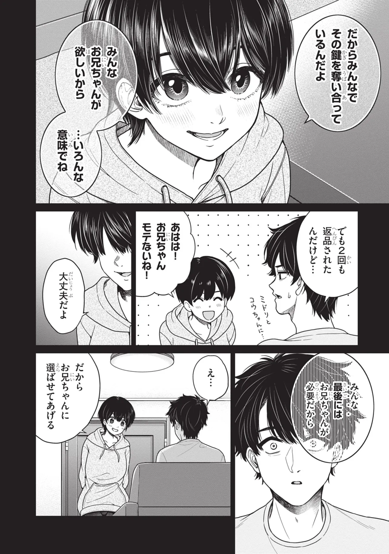 話題のWEBマンガがComicTopに登場! 双子の兄妹である那青(なお)と紅基(こうき)。 実は両片思いのふたりだが、“双子”に恋をすることは許されない。 そう思い、恋にそっと鍵をかけたのに、母から紅基の秘密が暴露され
