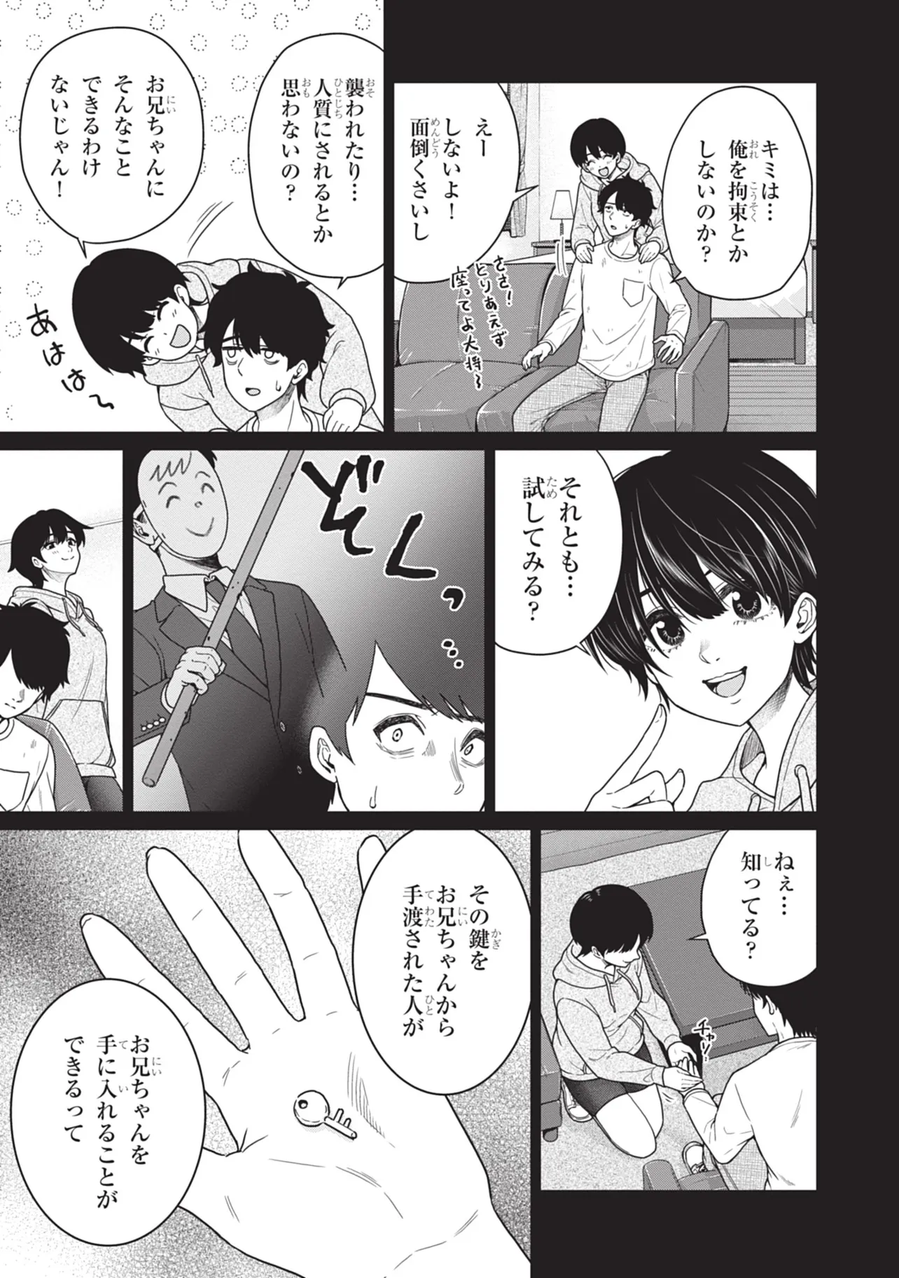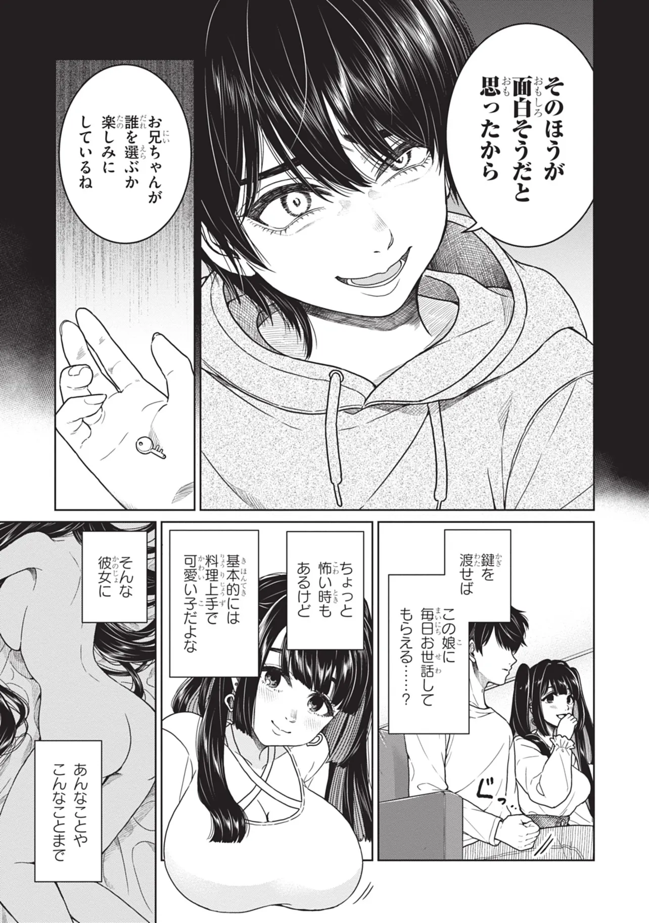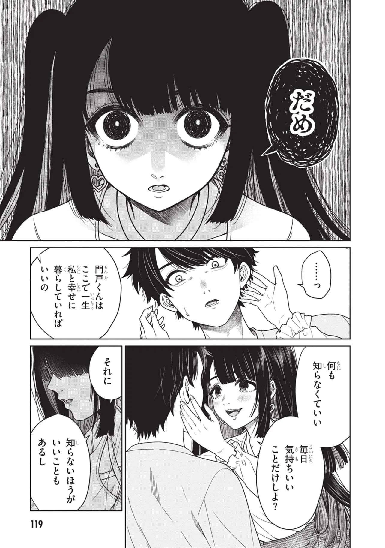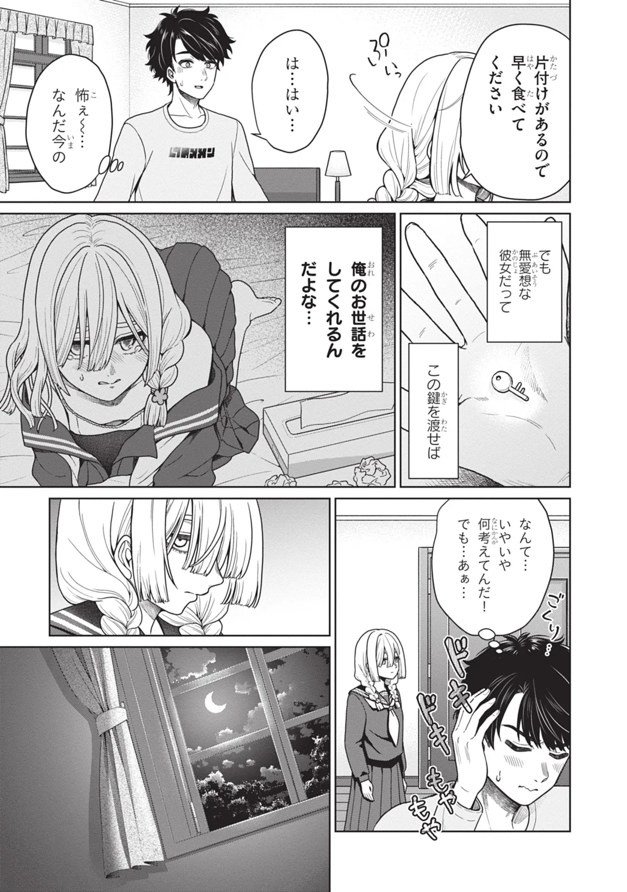 至って普通の大学生・門戸はある日、大学の飲み会で地雷系美女・辰巳ヶ原碧と出会い、気づけば碧の家に監禁されていた――!!? 碧からあらゆるお世話(エッ●なことも含む)をされ至れり尽くせりな状況も、なんとか碧の家からの脱出を試みようとする門戸。果たして、彼の運命は――!!? 最後の1ページまで瞬き厳禁。地雷系女からのエッ●な奉仕に耐える、エロティック・監禁サスペンス!!!!! ※この作品の今後は、再生数、お気に入り数によって決まるので、気に入った人はお気に入り登録して応援して下さい!
