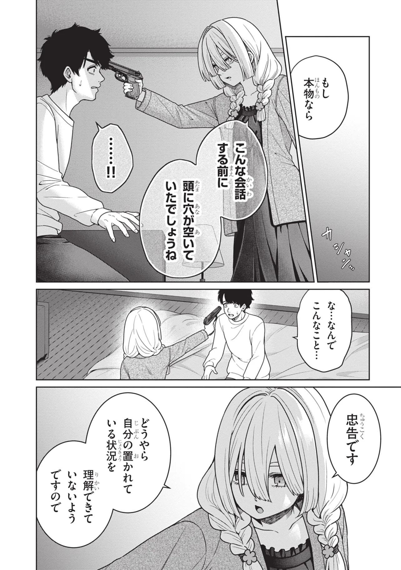 至って普通の大学生・門戸はある日、大学の飲み会で地雷系美女・辰巳ヶ原碧と出会い、気づけば碧の家に監禁されていた――!!? 碧からあらゆるお世話(エッ●なことも含む)をされ至れり尽くせりな状況も、なんとか碧の家からの脱出を試みようとする門戸。果たして、彼の運命は――!!? 最後の1ページまで瞬き厳禁。地雷系女からのエッ●な奉仕に耐える、エロティック・監禁サスペンス!!!!! ※この作品の今後は、再生数、お気に入り数によって決まるので、気に入った人はお気に入り登録して応援して下さい!