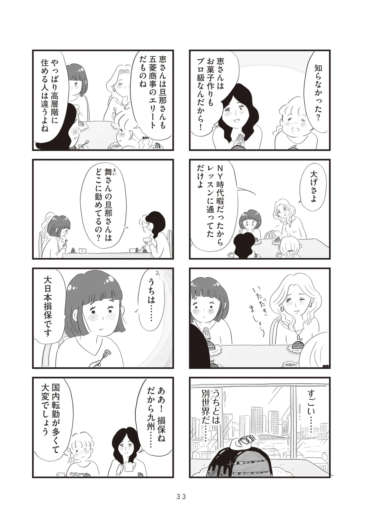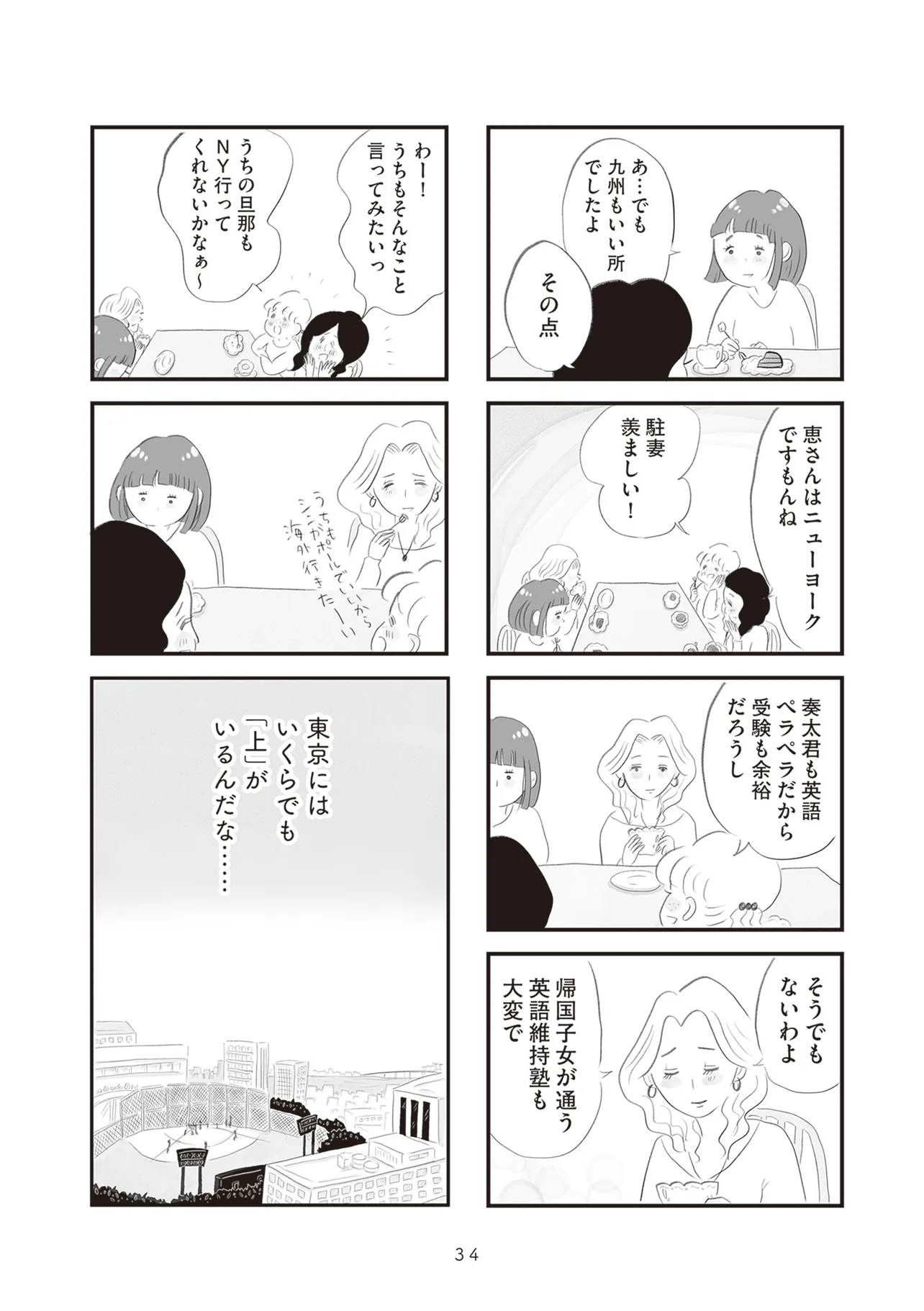 低層階と高層階、専業主婦とバリキャリ、子どもの学力、夫の職業など、さまざまな軸で見えない競争意識に駆り立てられていく大人たち。同じタワマンの低・中・高層階に住む家族3組の虚栄と内情を描くセミフィクション。