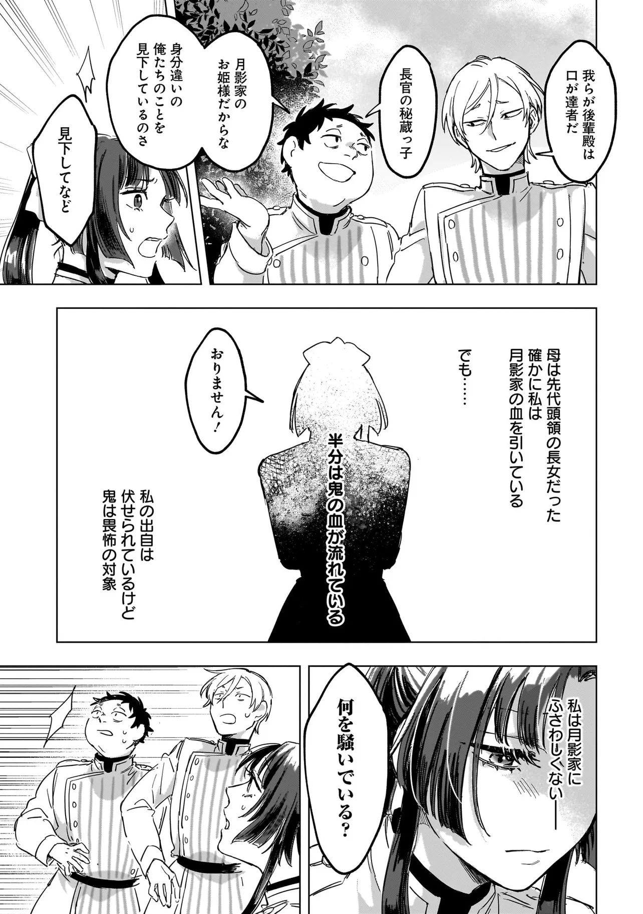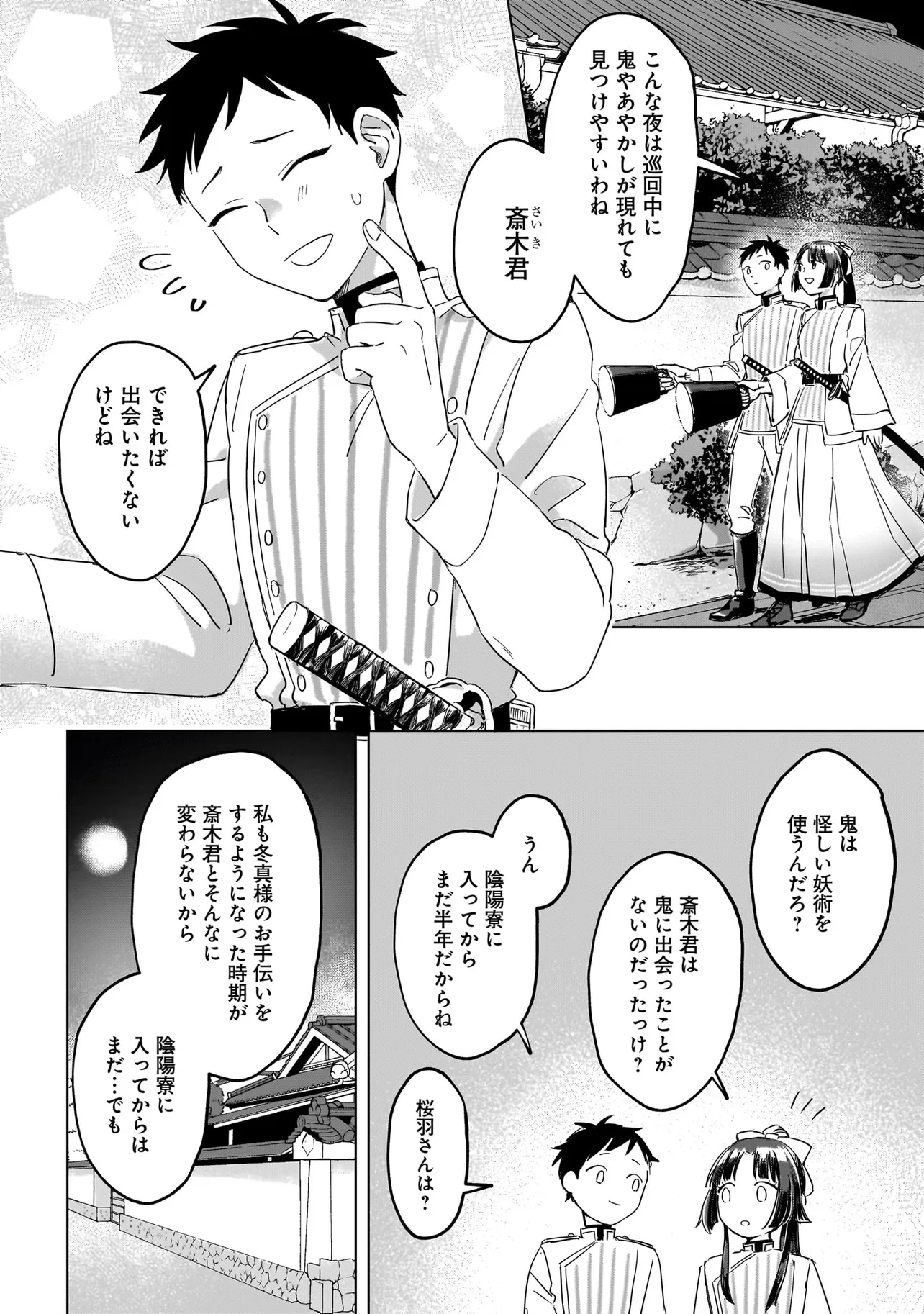 身寄りを失った桜羽を引き取り育ててくれた陰陽寮の長官・月影冬真(つきかげとうま)への恩返しと、鬼への復讐を誓って任務に励んでいたある日、鬼らしき女を追った先で、桜羽は美しい鬼の頭領・焔良(ほむら)に出会う。