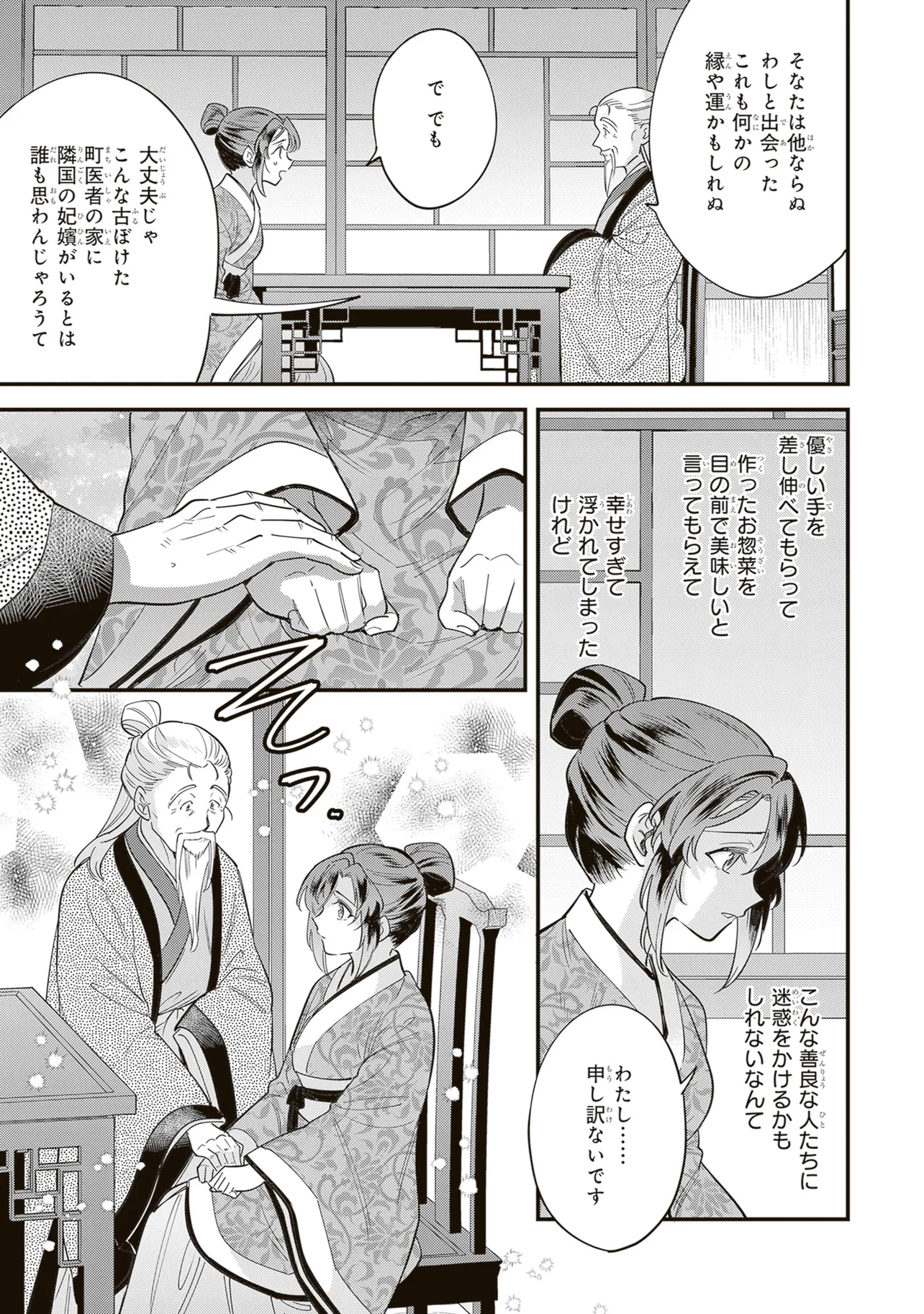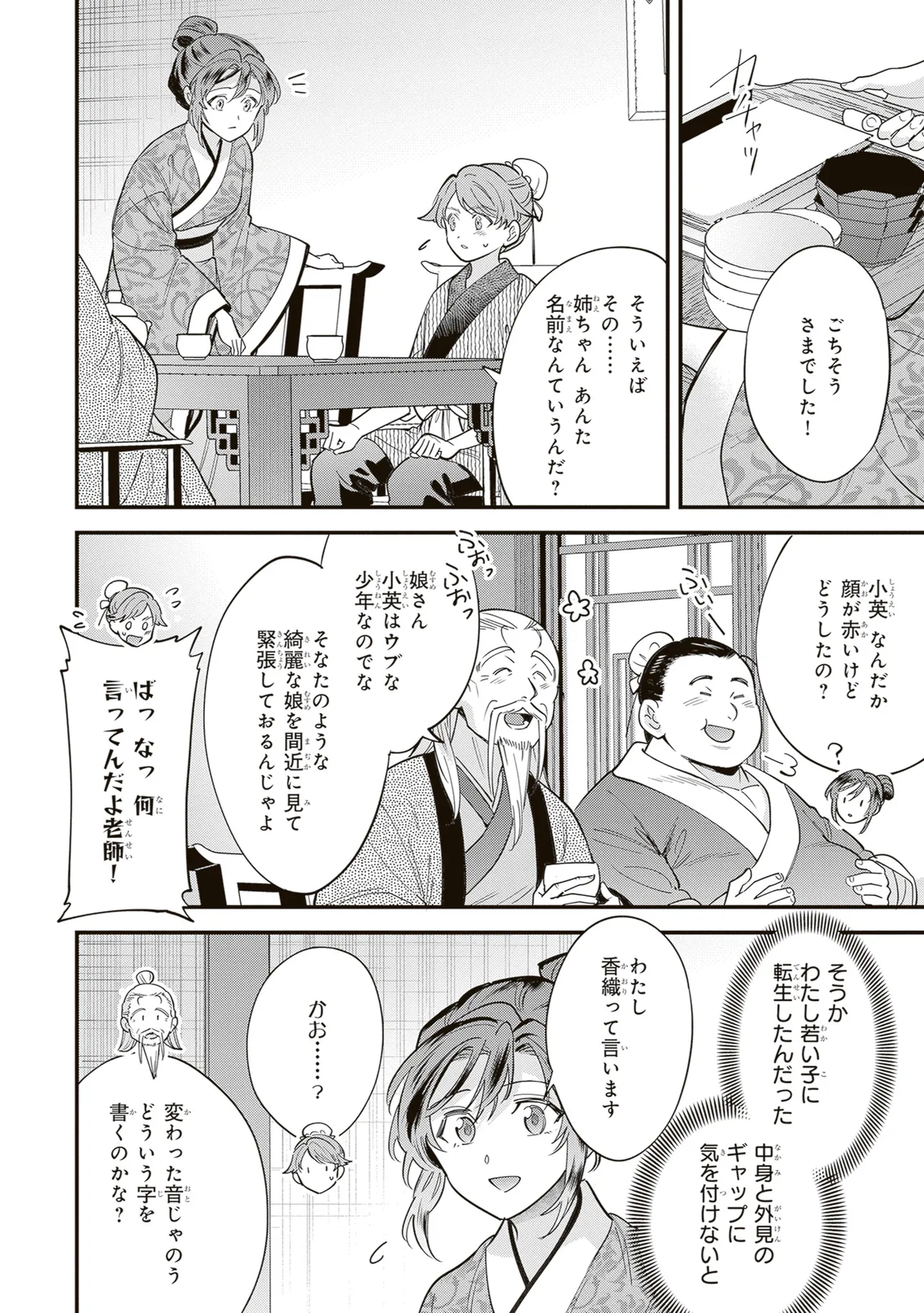 43歳の主婦・織田川香織は、家庭でも仕事でも生きる意味を見失っていた。ある日、仕事の帰り道に交通事故に遭い、気が付くと中華風の異世界に転生していてーー!? まったくの別人に、しかもなんだか若くなってるーー!? 途方に暮れる香織だったが、助けてくれた老人・華元化の家でせめてものお礼に、得意の手料理を振る舞うことに! 主婦歴15年、異世界でも真心込めたいつもの味に、前世では言ってもらえなかった『美味しい』の一言がうれしくてーー。「ここでおそうざいをたくさん作ろう!」 夢は異世界で食堂オープンーー!? 料理の力で生まれ変わる、中華転生お料理譚!