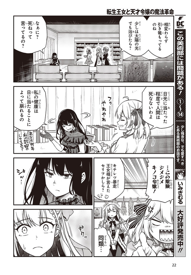 転生王女と天才令嬢の魔法革命 第18話③ 転生王女と天才令嬢の魔法革命 投稿者 admin - 3年 前に 幸せな読書漫画 転生王女と天才令嬢の魔法革命 第18話③ , いいねと共有ボタンをクリックすることを忘れないでください. Manga 転生王女と天才令嬢の魔法革命 常に更新されます 無料コミック Comic Top. 他のマンガの更新を読むことを忘れないでください。 マンガコレクションのリスト 無料コミック Comic Top マンガリストメニューにあります. お友達と共有しましょう! Facebook Twitter Pinterest Whatsapp 前のエピソード すべての章 次のエピソード リスト ページング Loading.. 前のエピソード すべての章 次のエピソード リスト ページング お友達と共有しましょう! Facebook Twitter Pinterest Whatsapp お気に入りに追加に続く 12 人 転生王女と天才令嬢の魔法革命 異世界に転生し、前世の知識を活用した独自の技術「魔学」を編み出した破天荒王女アニスフィア。 魔学で作った箒のある日の飛行テスト中に、あらゆる魔法を使いこなす天才令嬢ユフィリアが、婚約破棄をされている場面に遭遇し――。 「さて行こうか、私が攫ってあげる!」 2人の出会いから始まる、次世代異世界百合ファンタジー開幕! きさらぎゆり(キャラクターデザイン)南高春告(漫画)鴉ぴえろ(原作) なろうなろう系ファンタジア文庫異世界異世界コミック百合転生電撃マオウ