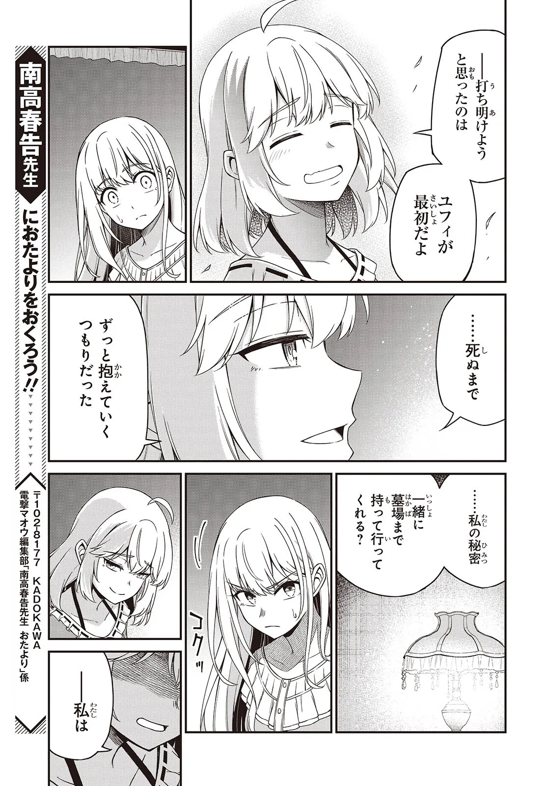 転生王女と天才令嬢の魔法革命 第49話➁ 転生王女と天才令嬢の魔法革命 投稿者 admin - 2週間 前に 幸せな読書漫画 転生王女と天才令嬢の魔法革命 第49話➁ , いいねと共有ボタンをクリックすることを忘れないでください. Manga 転生王女と天才令嬢の魔法革命 常に更新されます 無料コミック Comic Top. 他のマンガの更新を読むことを忘れないでください。 マンガコレクションのリスト 無料コミック Comic Top マンガリストメニューにあります. お友達と共有しましょう! Facebook Twitter Pinterest Whatsapp 前のエピソード すべての章 次のエピソード リスト ページング Loading.. 前のエピソード すべての章 次のエピソード リスト ページング お友達と共有しましょう! Facebook Twitter Pinterest Whatsapp お気に入りに追加に続く 12 人 転生王女と天才令嬢の魔法革命 異世界に転生し、前世の知識を活用した独自の技術「魔学」を編み出した破天荒王女アニスフィア。 魔学で作った箒のある日の飛行テスト中に、あらゆる魔法を使いこなす天才令嬢ユフィリアが、婚約破棄をされている場面に遭遇し――。 「さて行こうか、私が攫ってあげる!」 2人の出会いから始まる、次世代異世界百合ファンタジー開幕! きさらぎゆり(キャラクターデザイン)南高春告(漫画)鴉ぴえろ(原作) なろうなろう系ファンタジア文庫異世界異世界コミック百合転生電撃マオウ